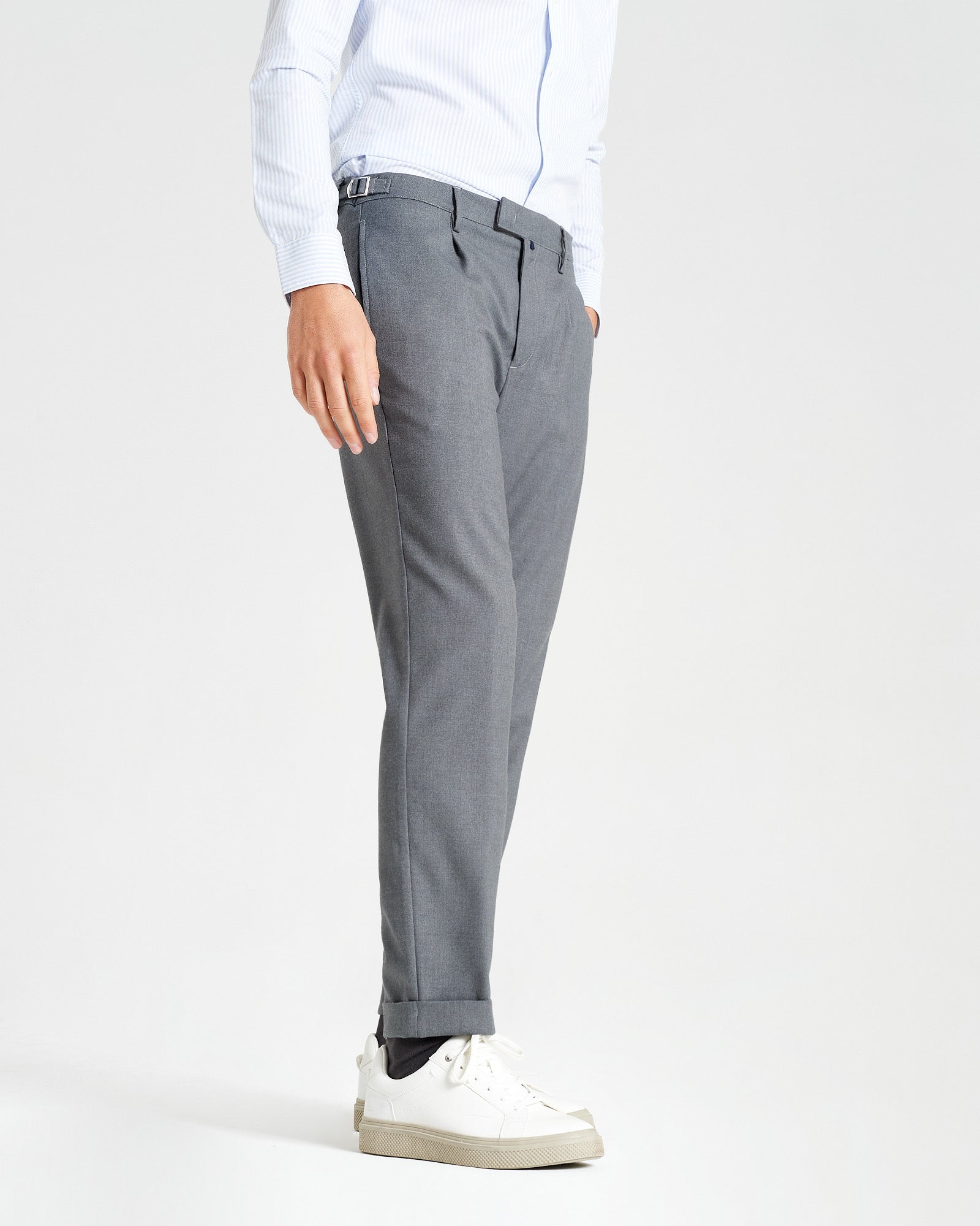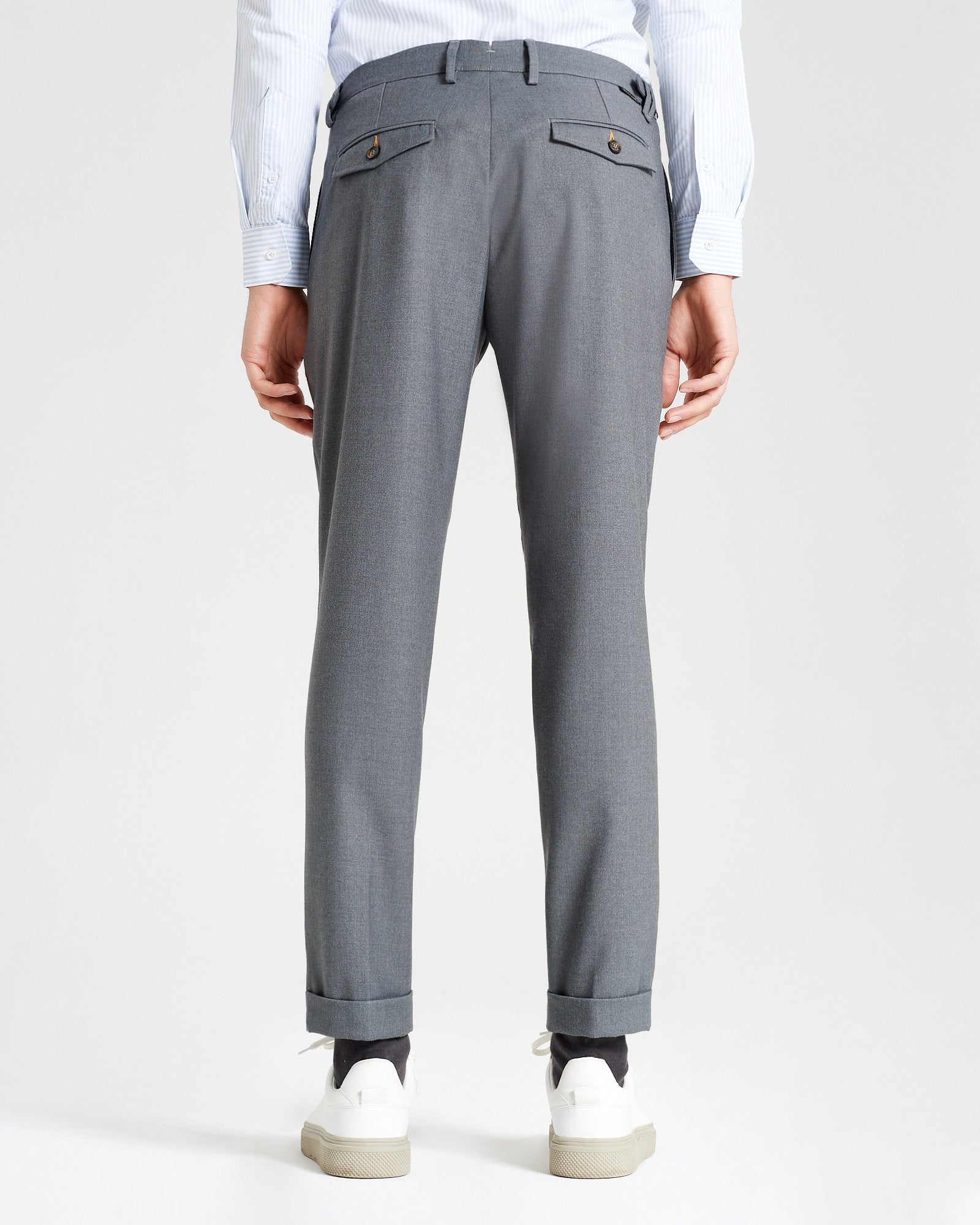 Pantalone chino con pince e risvolto in poliestere pesante grigio medio regular fit