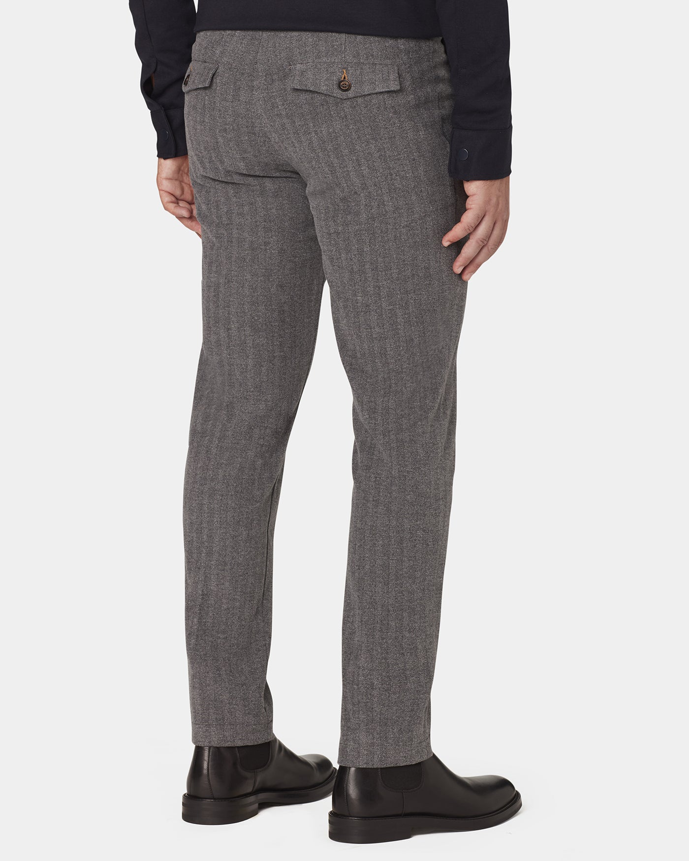 • Tasche davanti all'americana rifinite con impuntura, tasche posteriori a pattina