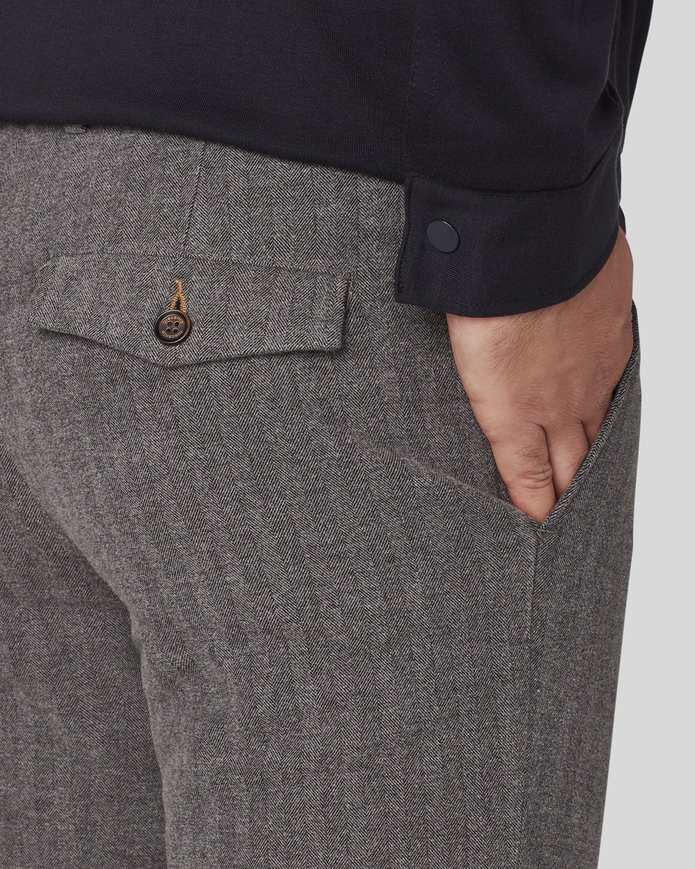 • Cintura interna sartoriale con piping in tela e passanti sartoriali