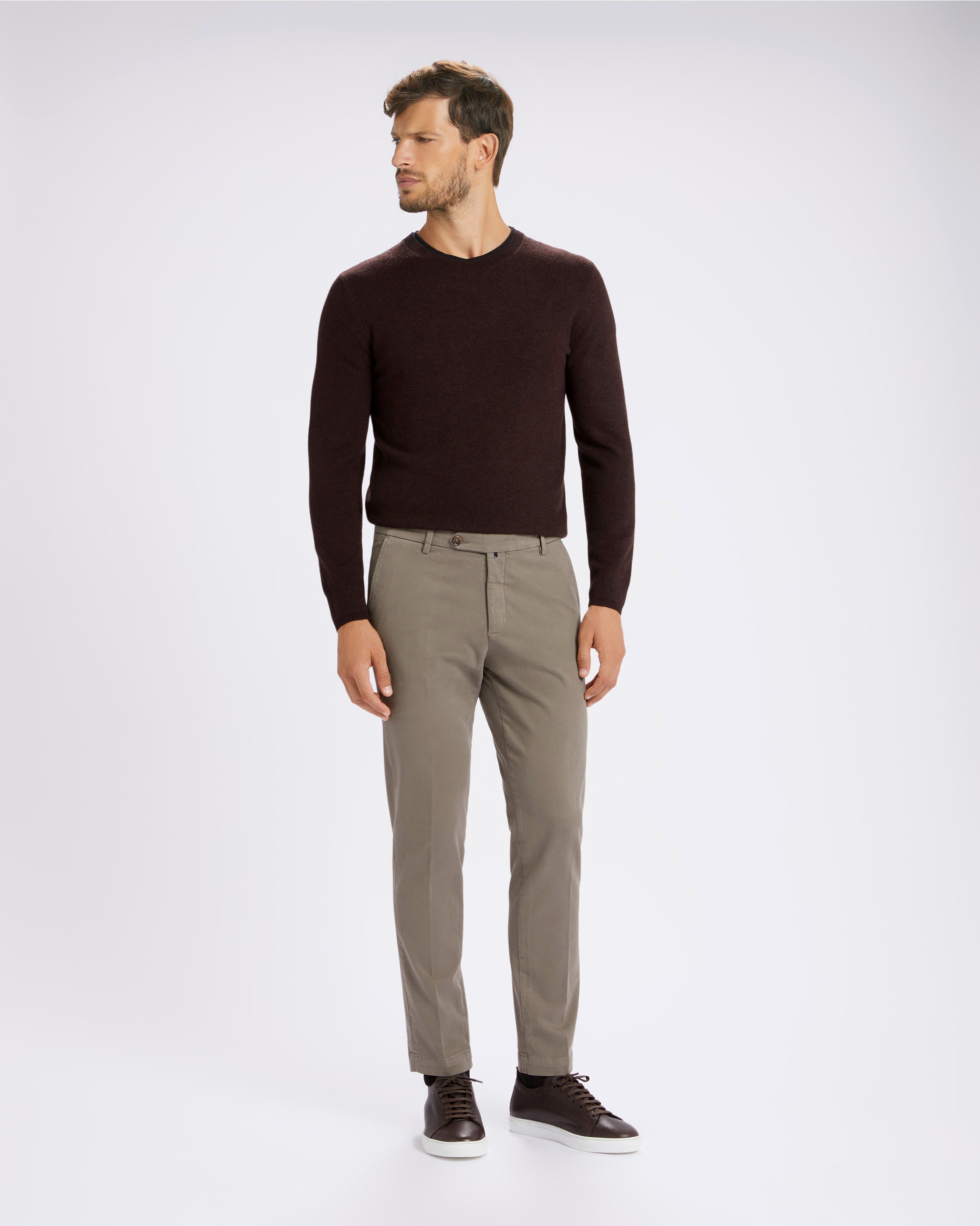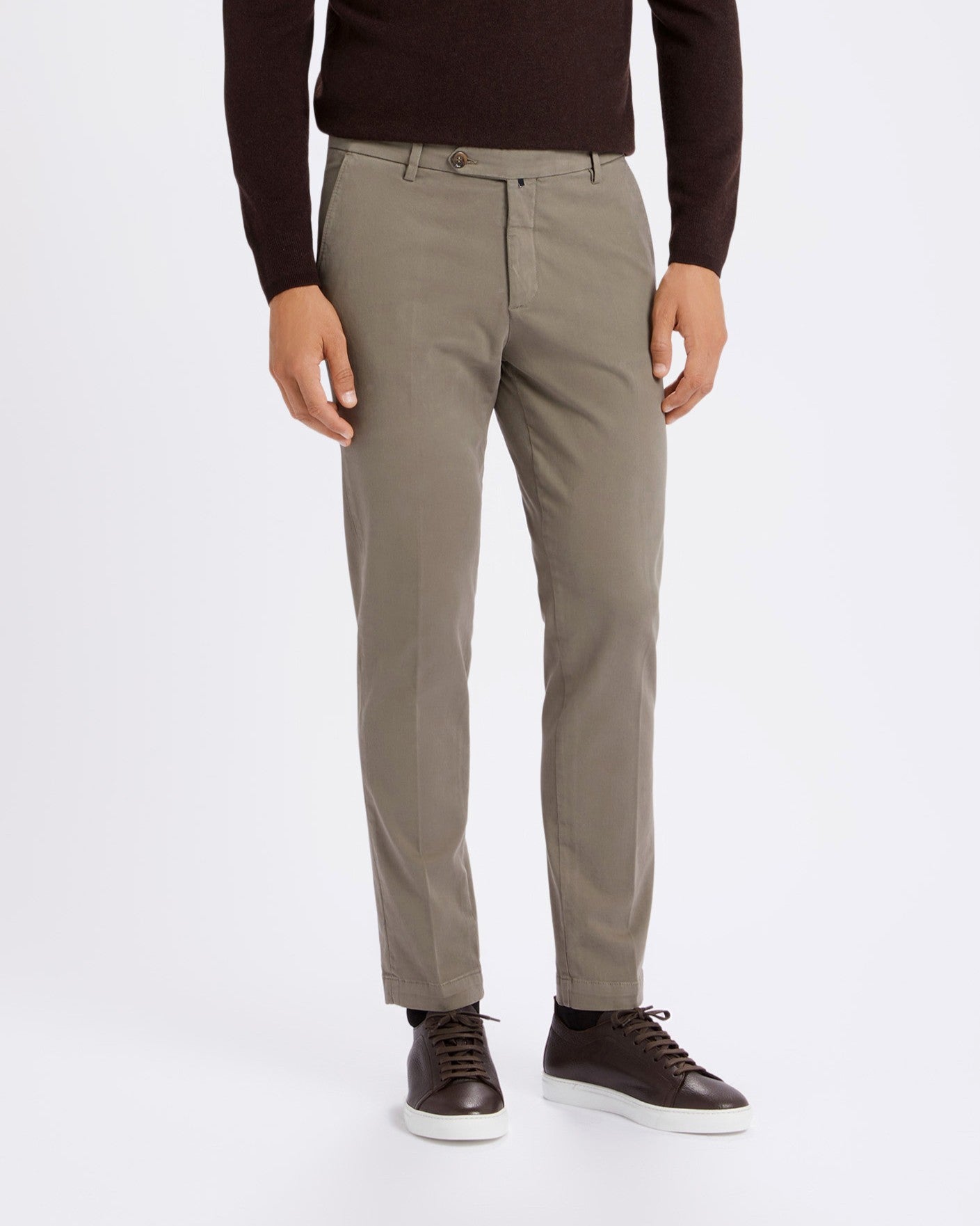 Pantalone chino in gabardina di cotone pesante grigio tortora straight fit