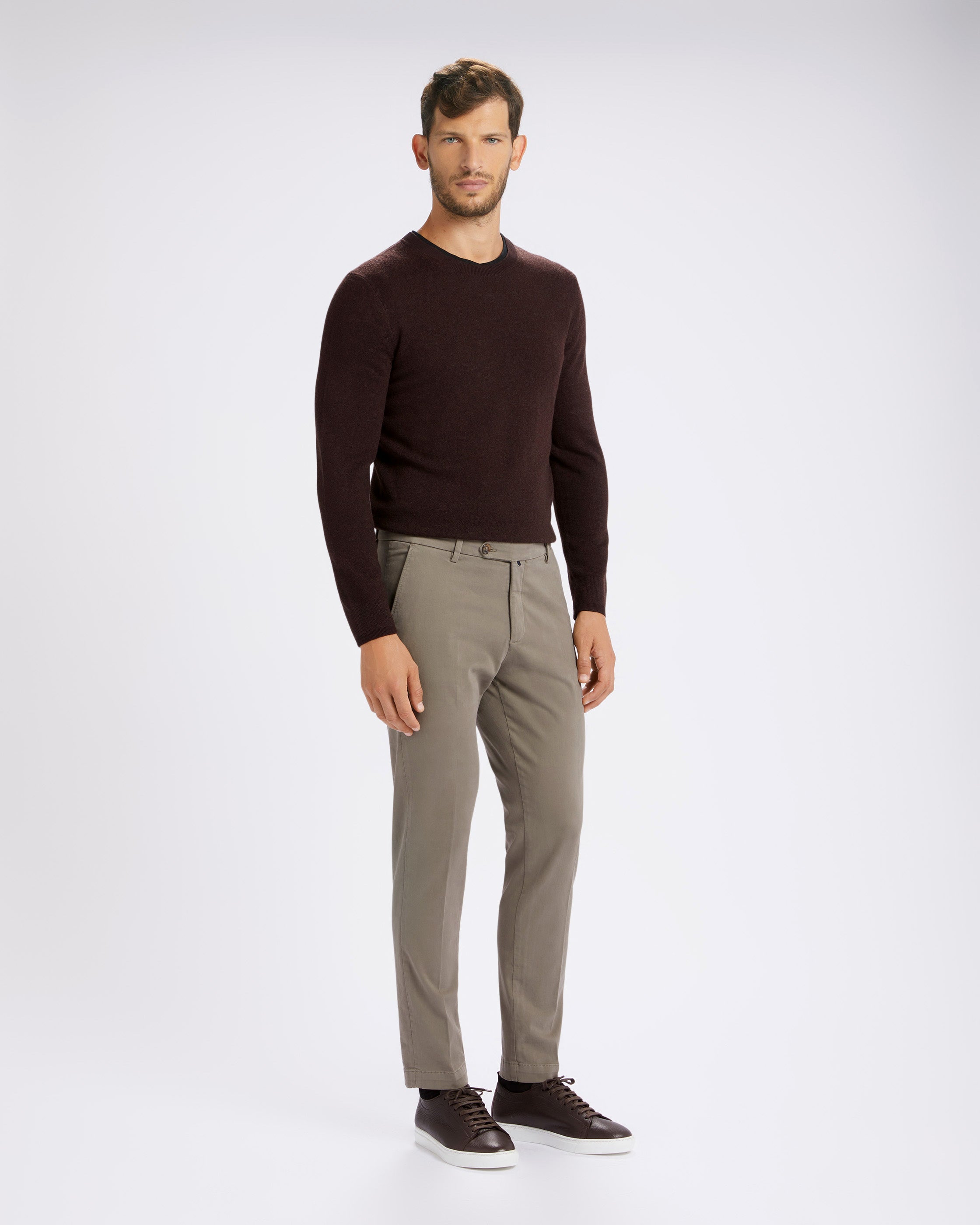 Il Chino è il pantalone più versatile, da indossare tutti i giorni: dalla colazione al bar al dopo cena, in contesti casual o eleganti. Un must-have dalla vestibilità confortevole, in costruzione sartoriale e con rivisitazioni contemporanee. Il nostro capo signature: un modello iconico, dalle linee semplici e pulite, perfetto per ogni occasione. Facile da indossare, si distingue per l'attenzione ai dettagli e per la lavorazione, con finiture accurate e cuciture resistenti, per durare nel tempo.
