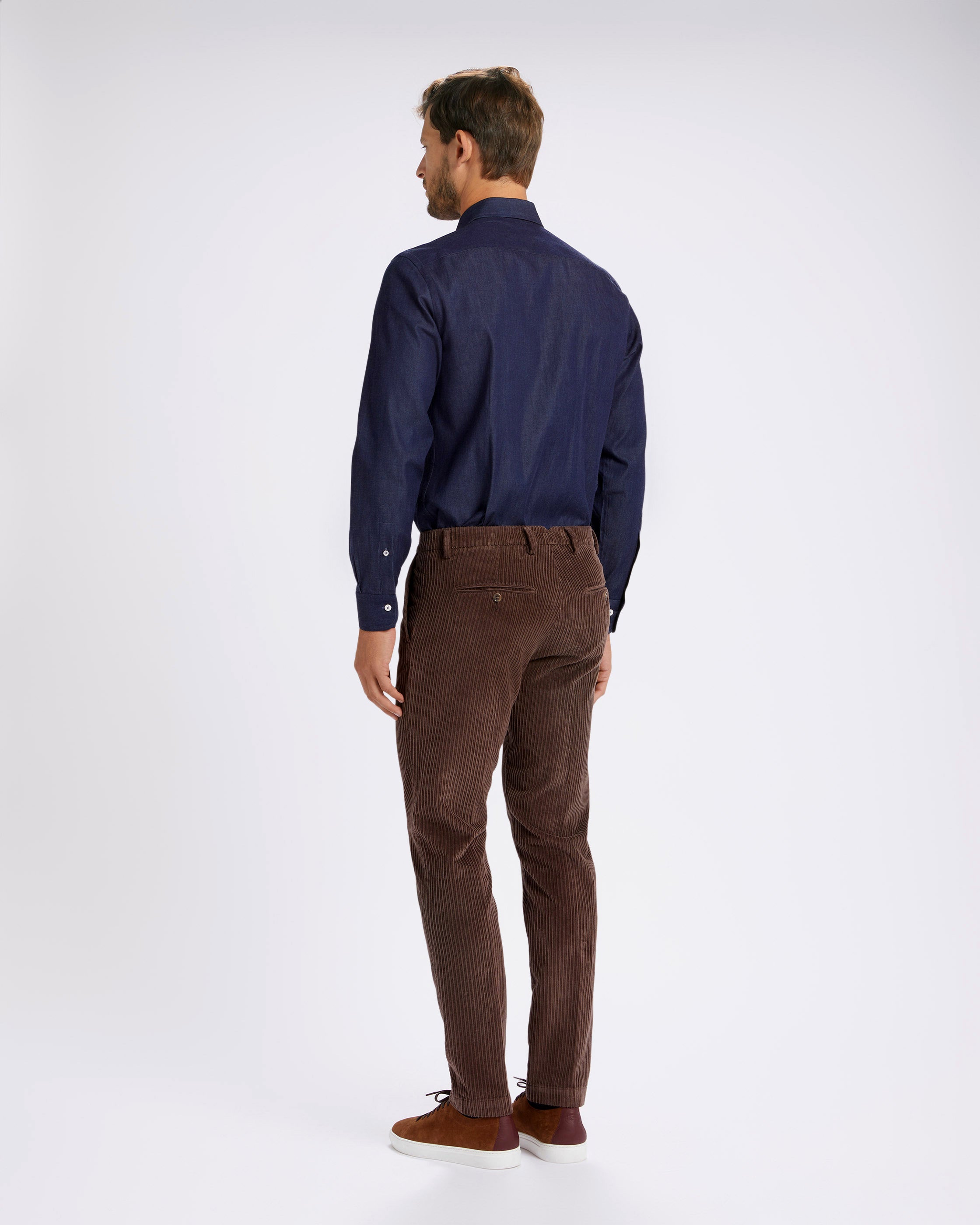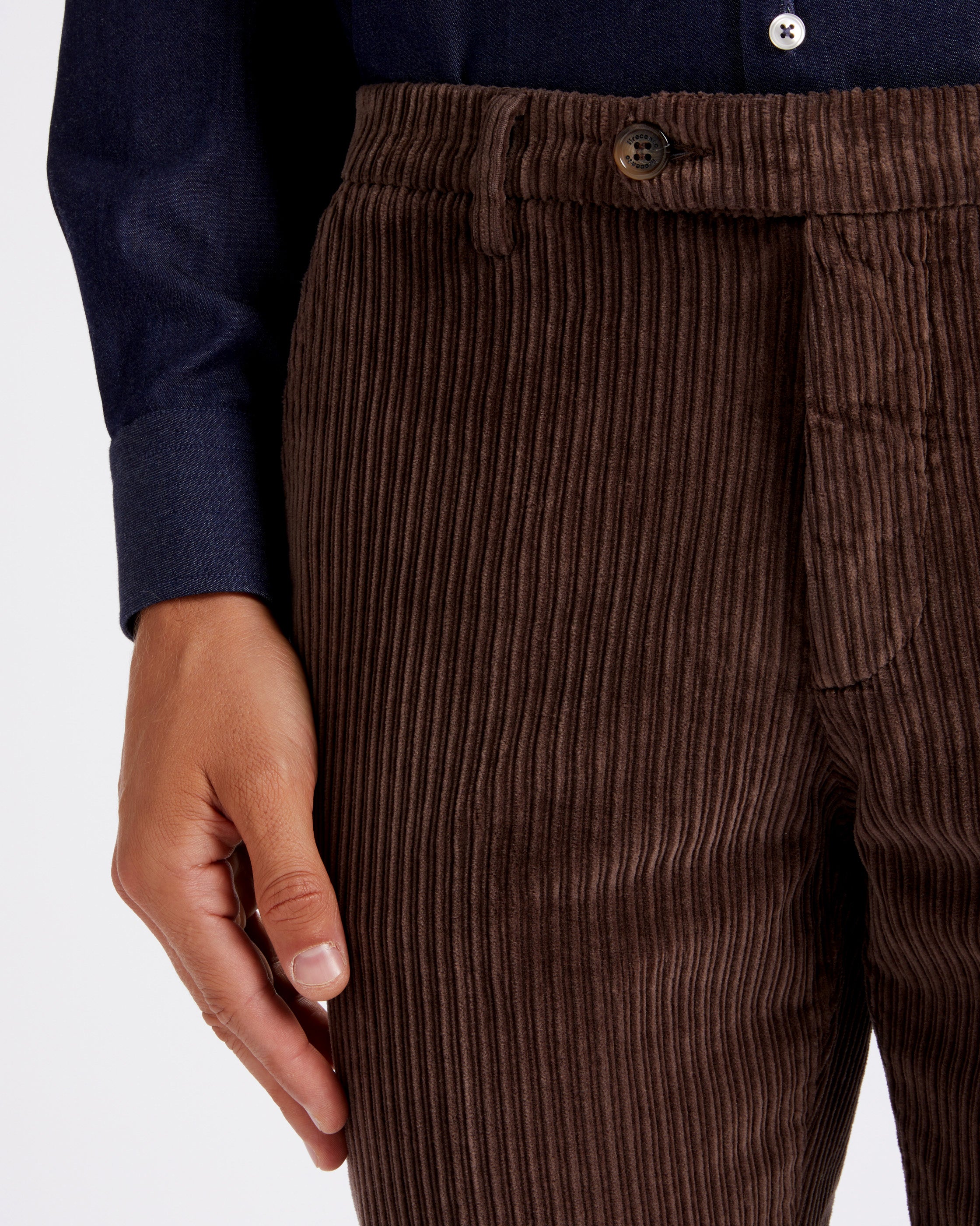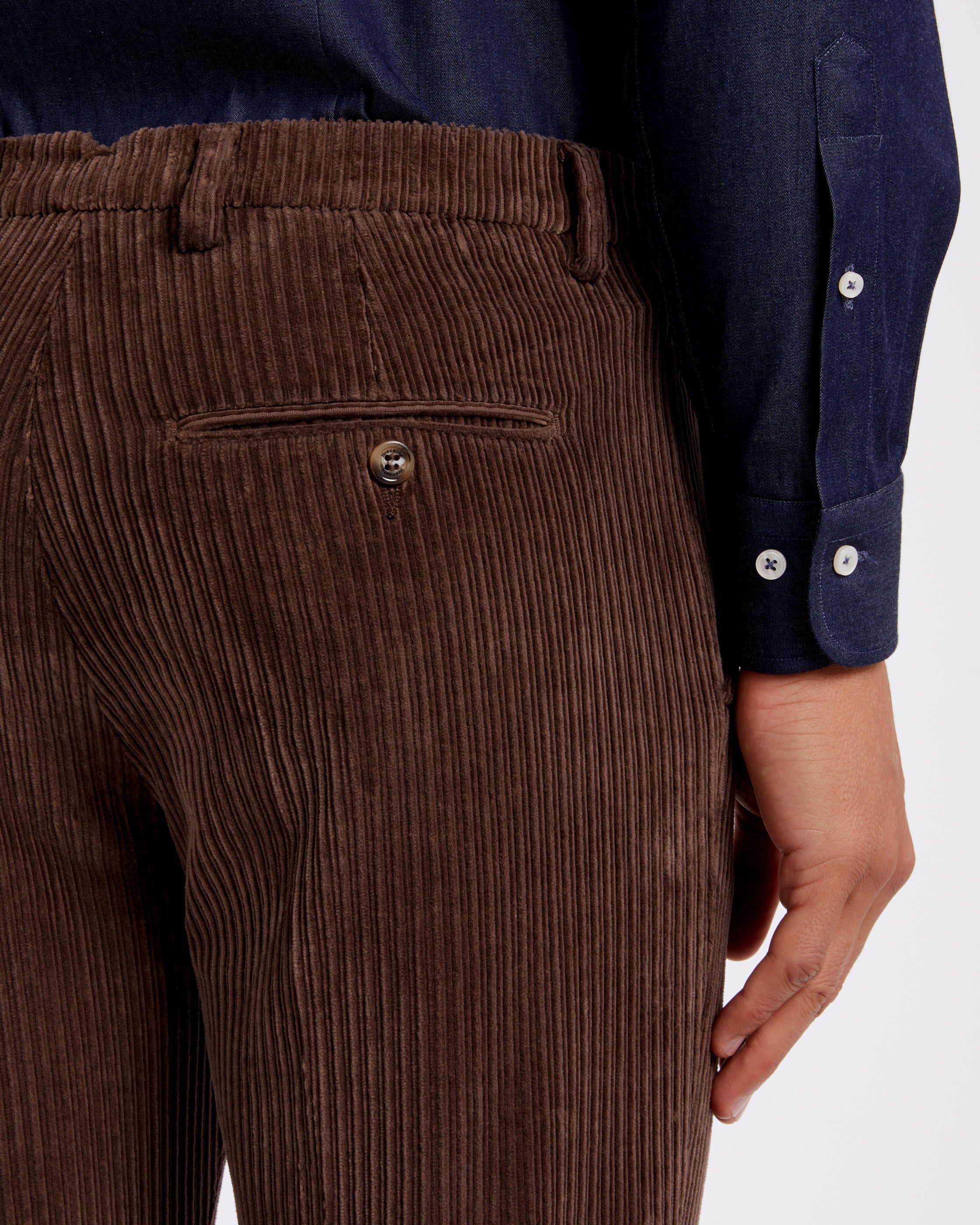 Pantalone chino in velluto a costa larga alternata pesante marrone testa di moro straight fit