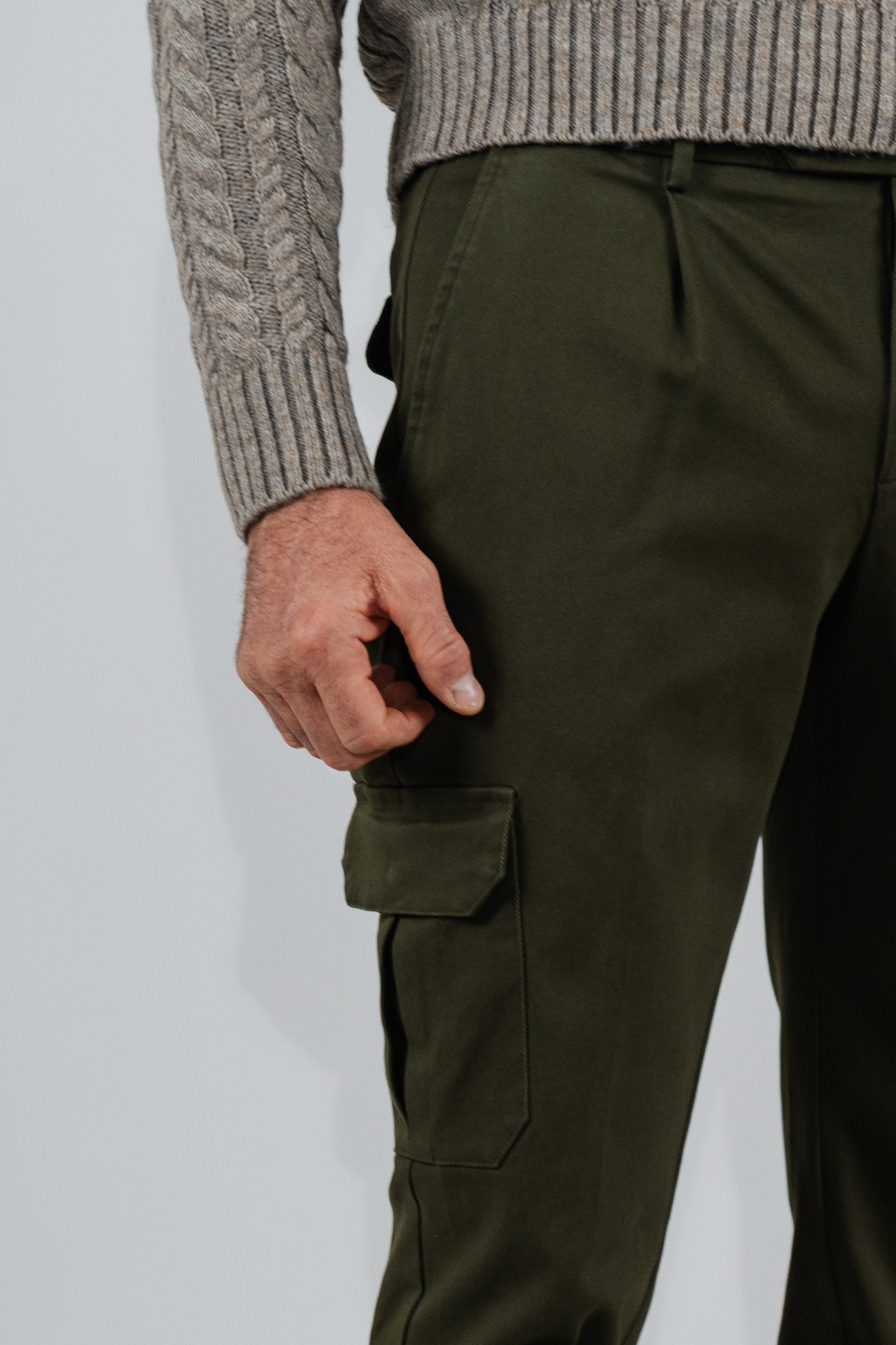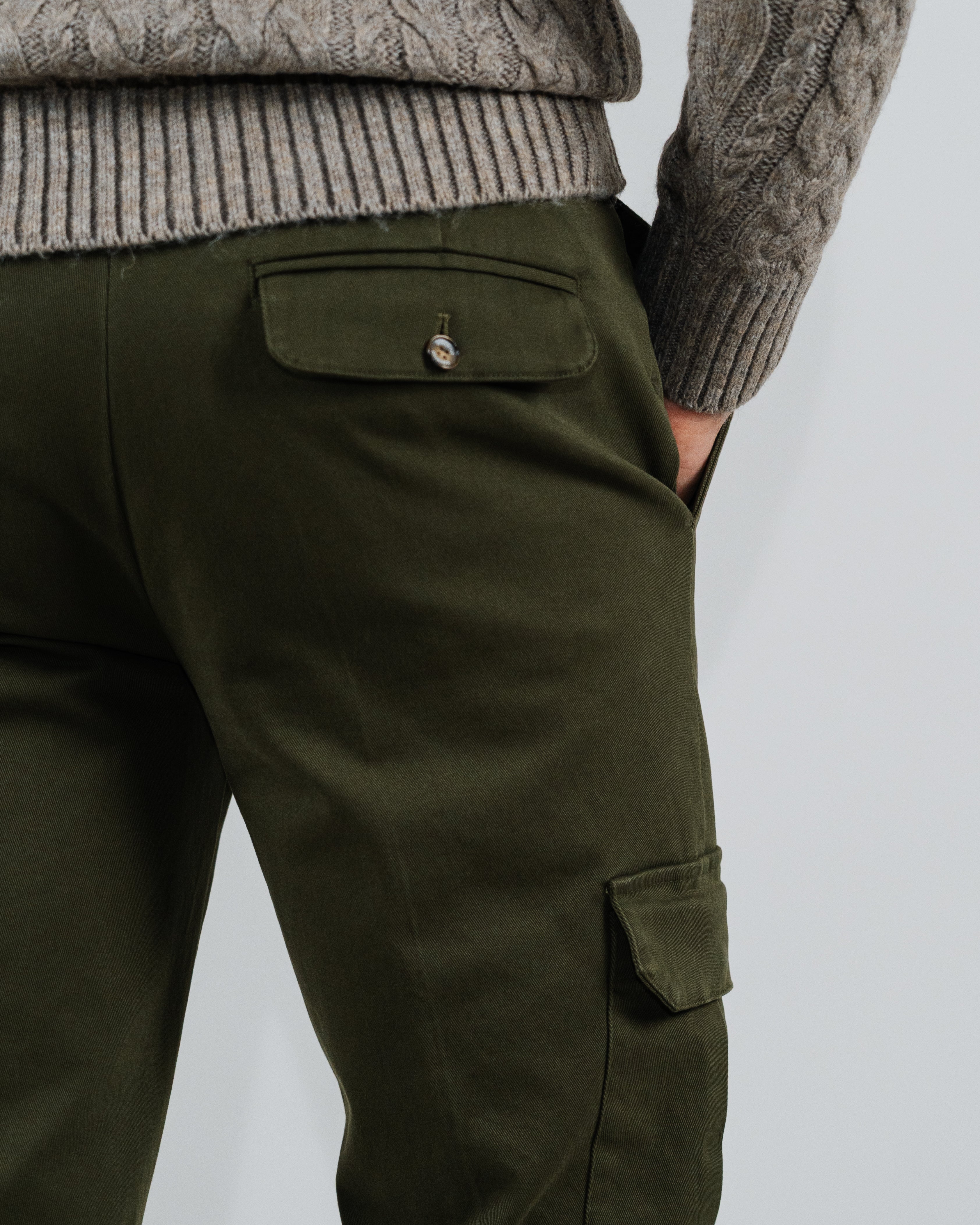 Pantalone cargo in cotone canvas pesante verde regular fit
