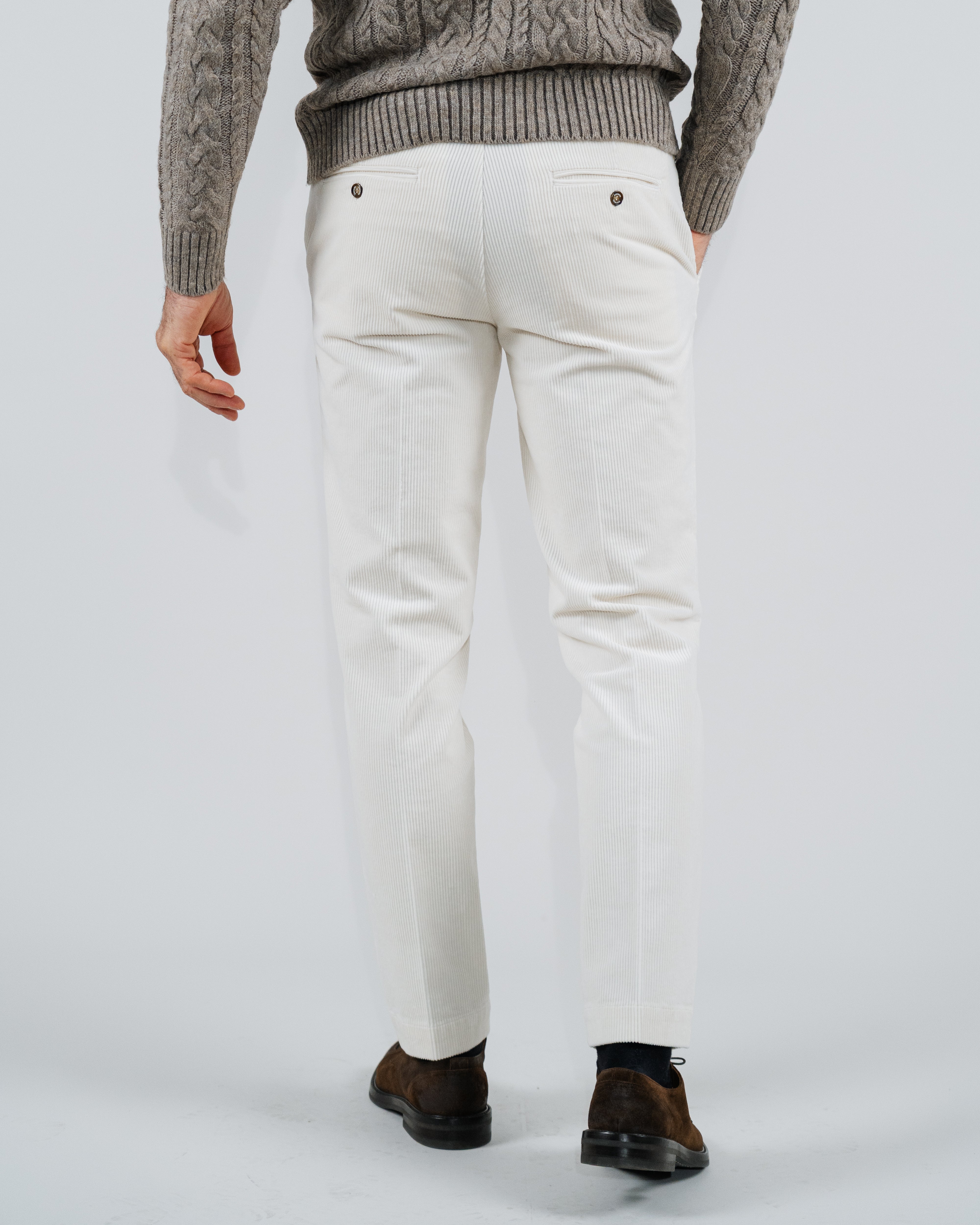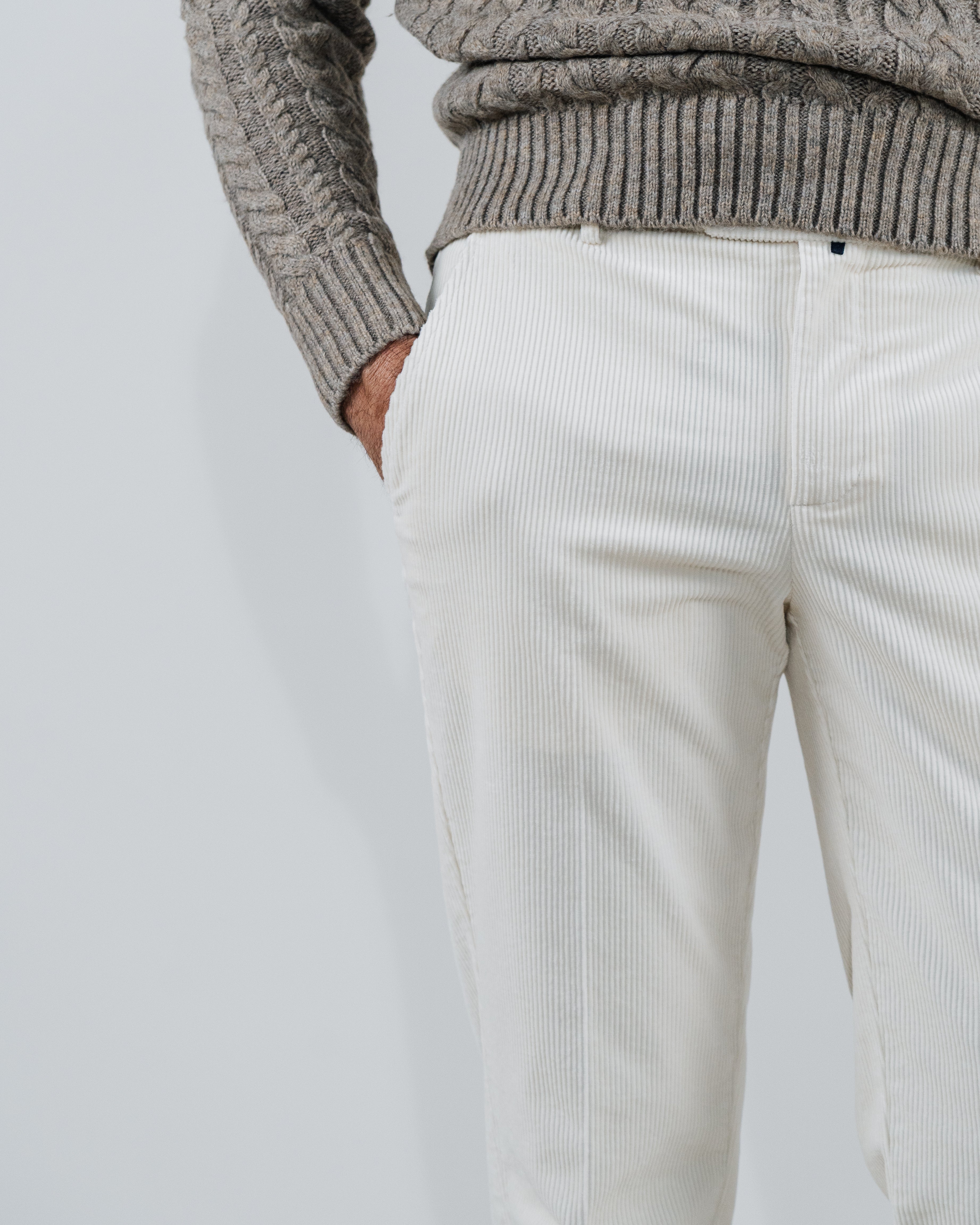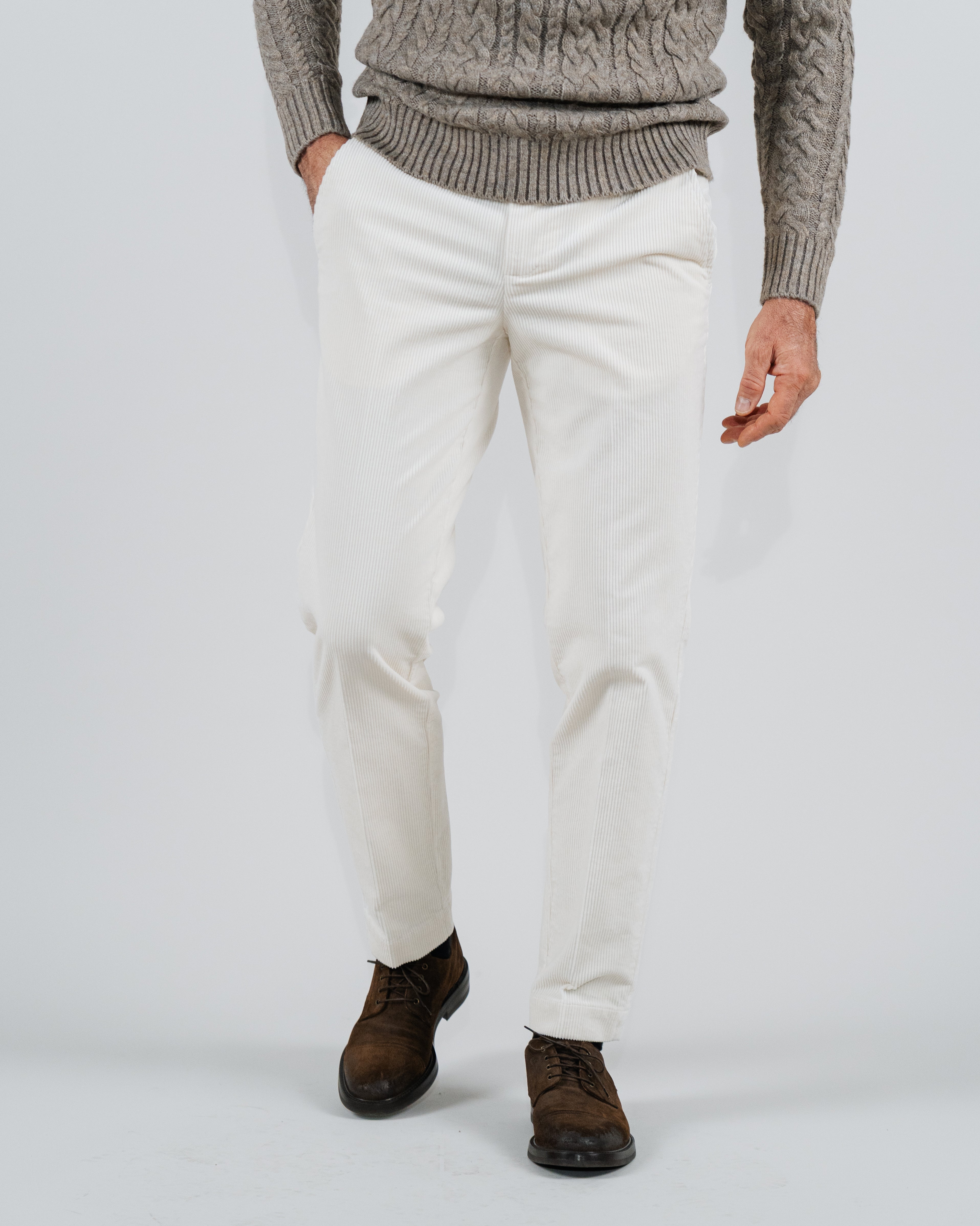 Pantalone chino in in velluto millerighe a costa fine pesante bianco panna slim fit