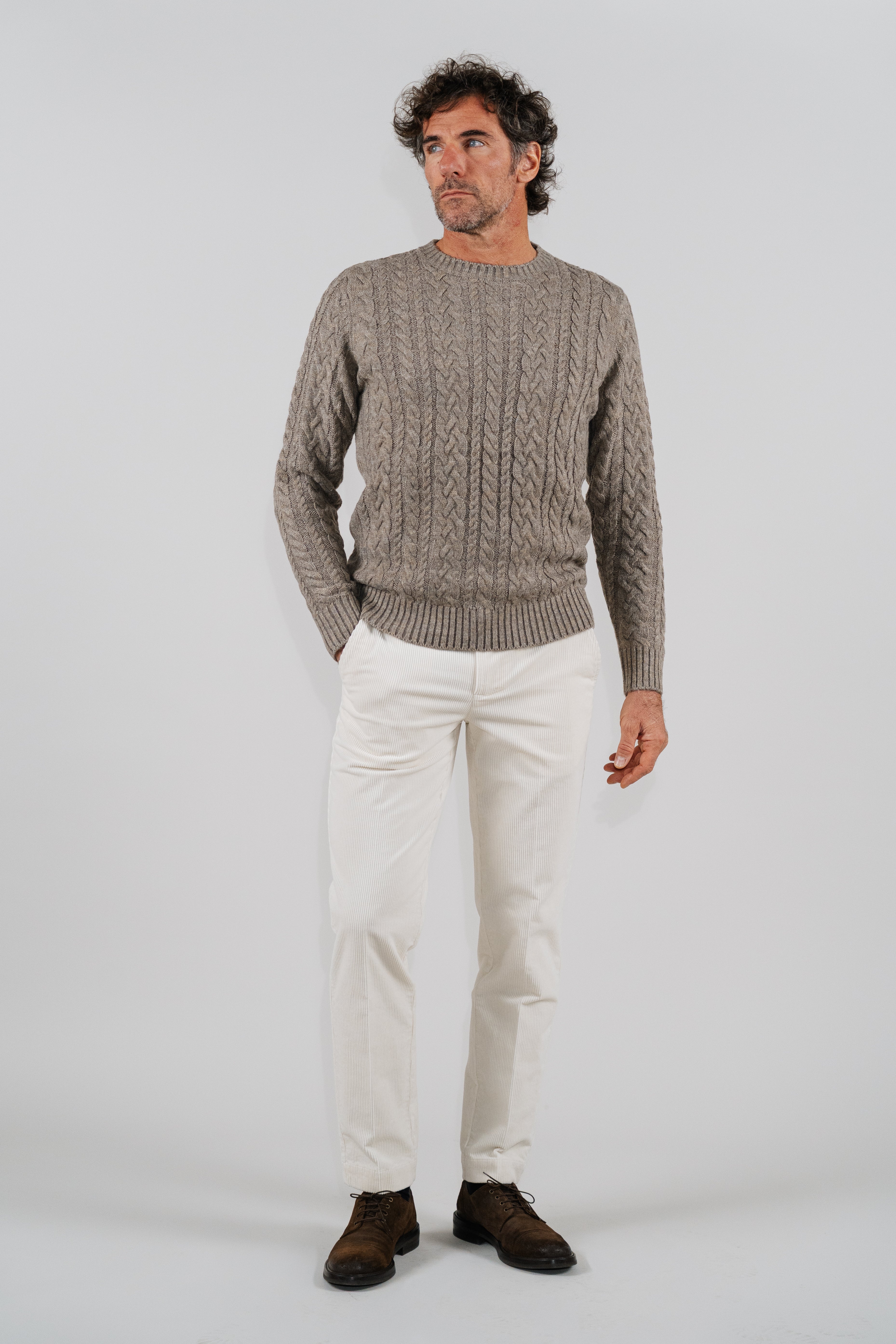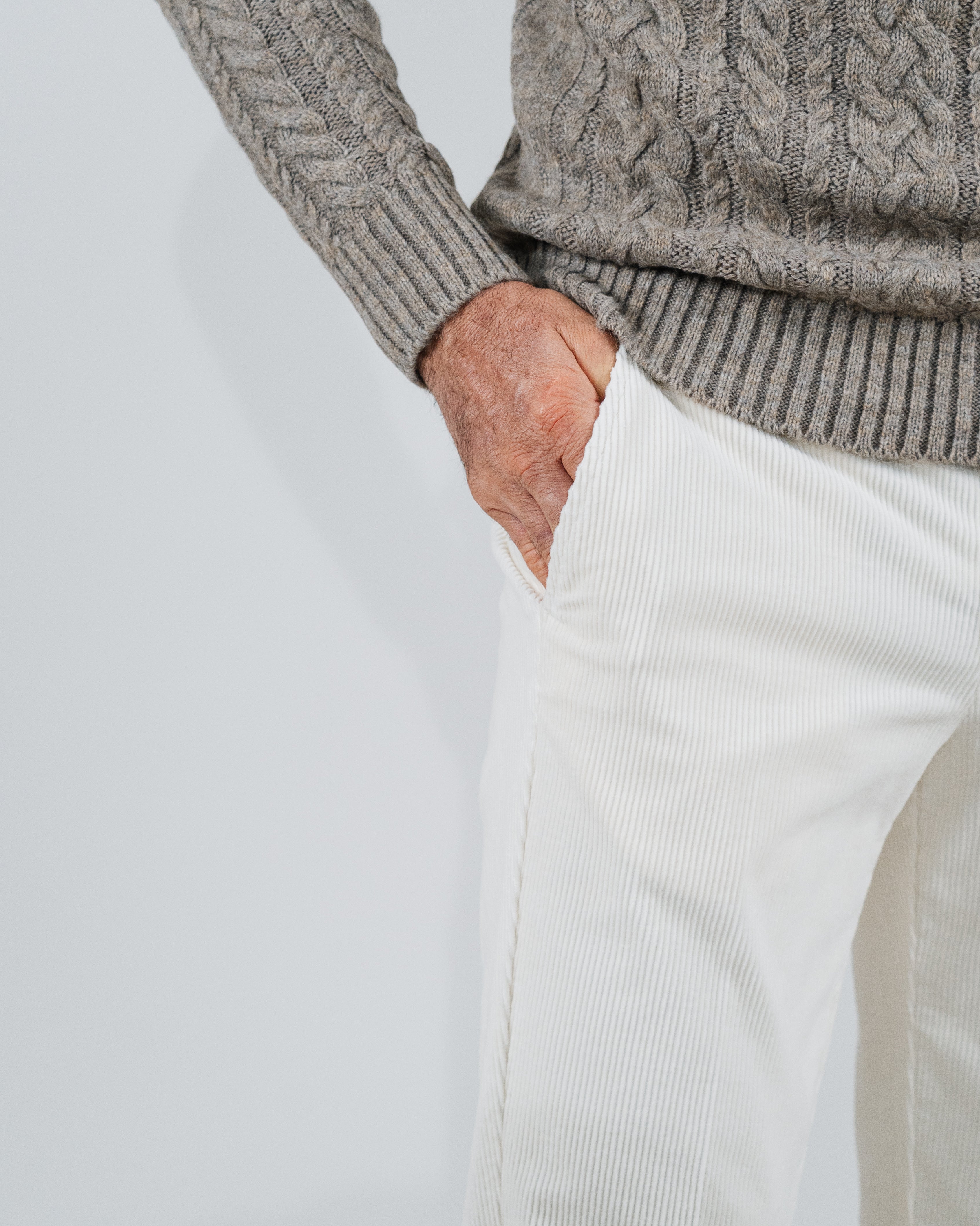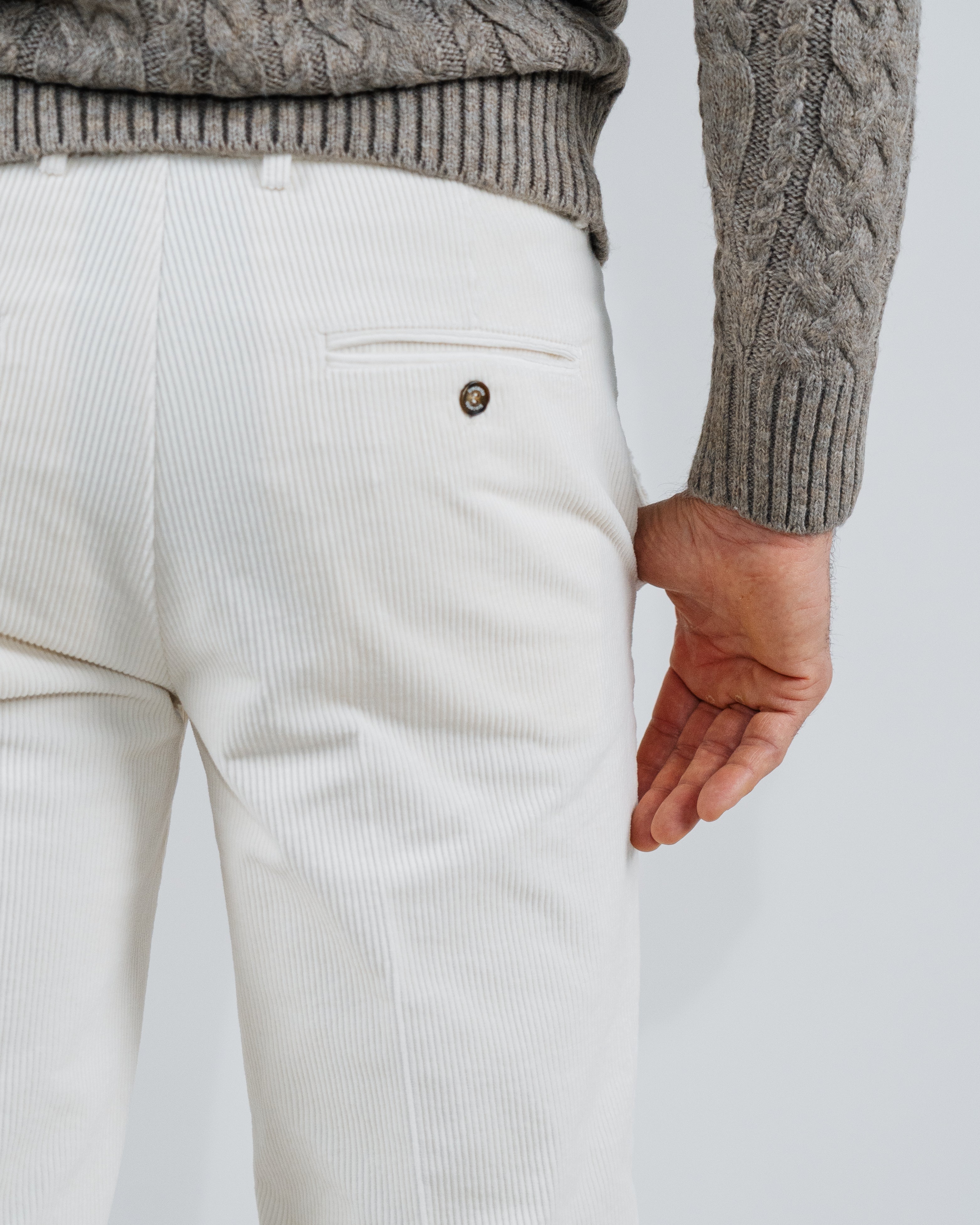 Pantalone chino in in velluto millerighe a costa fine pesante bianco panna slim fit