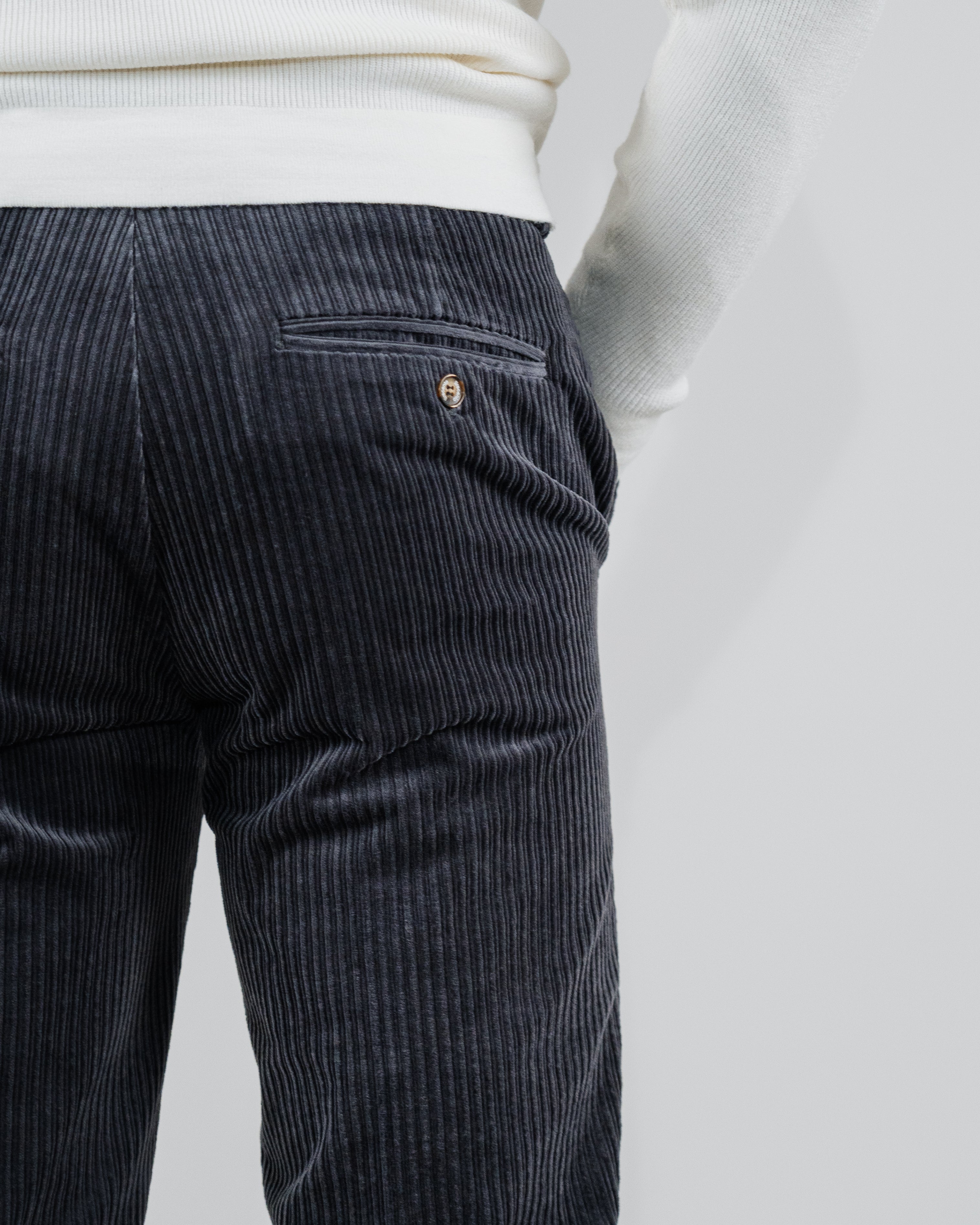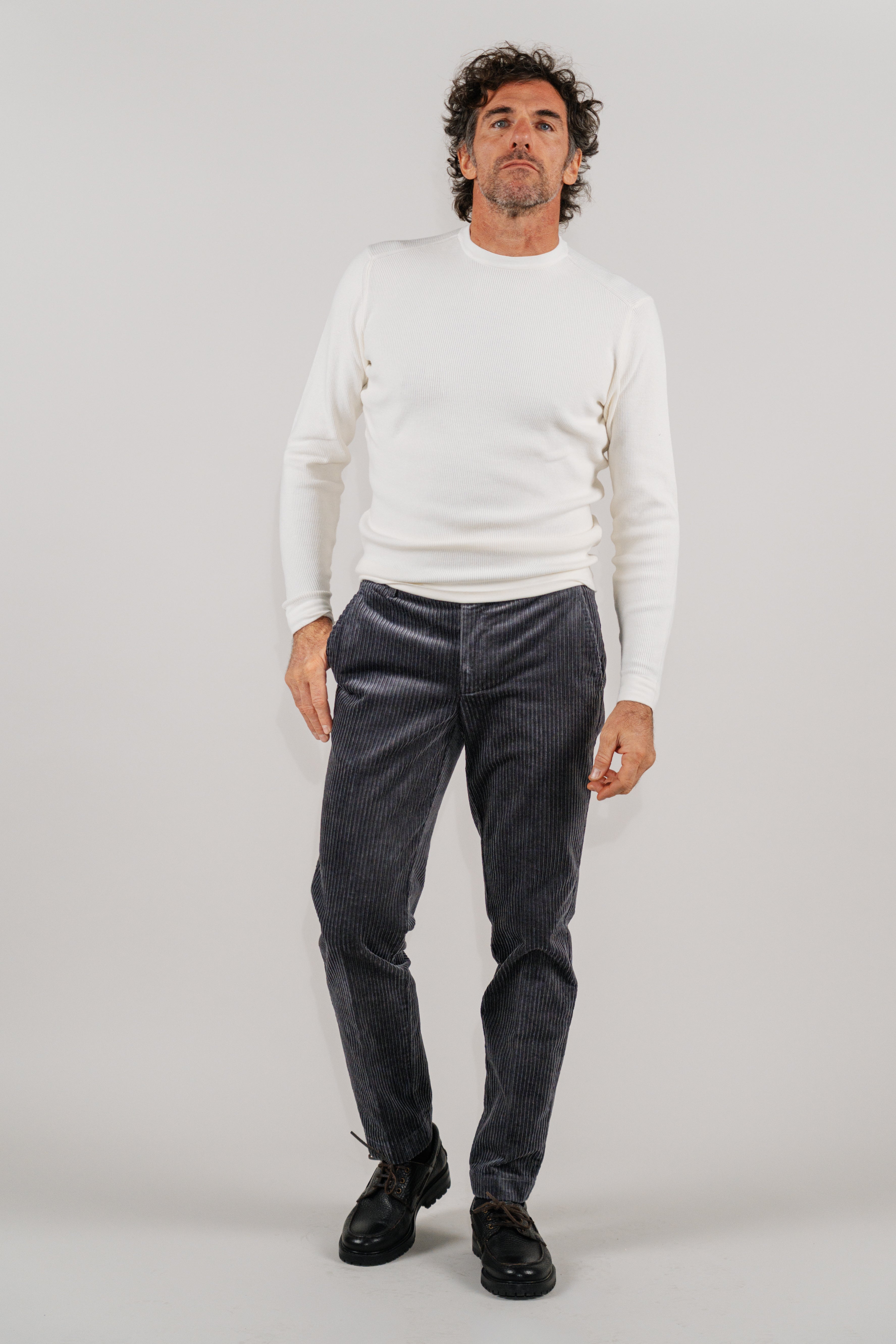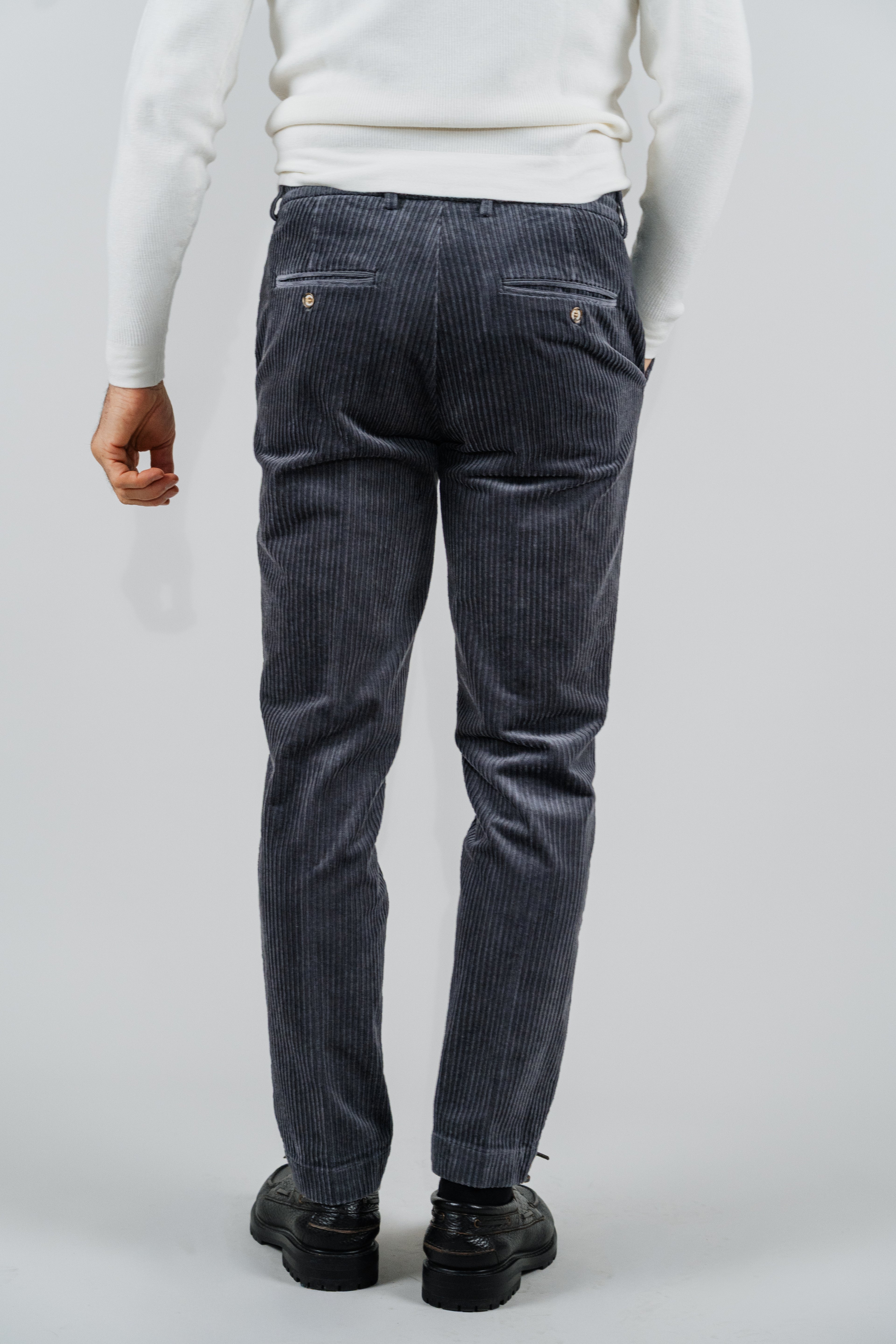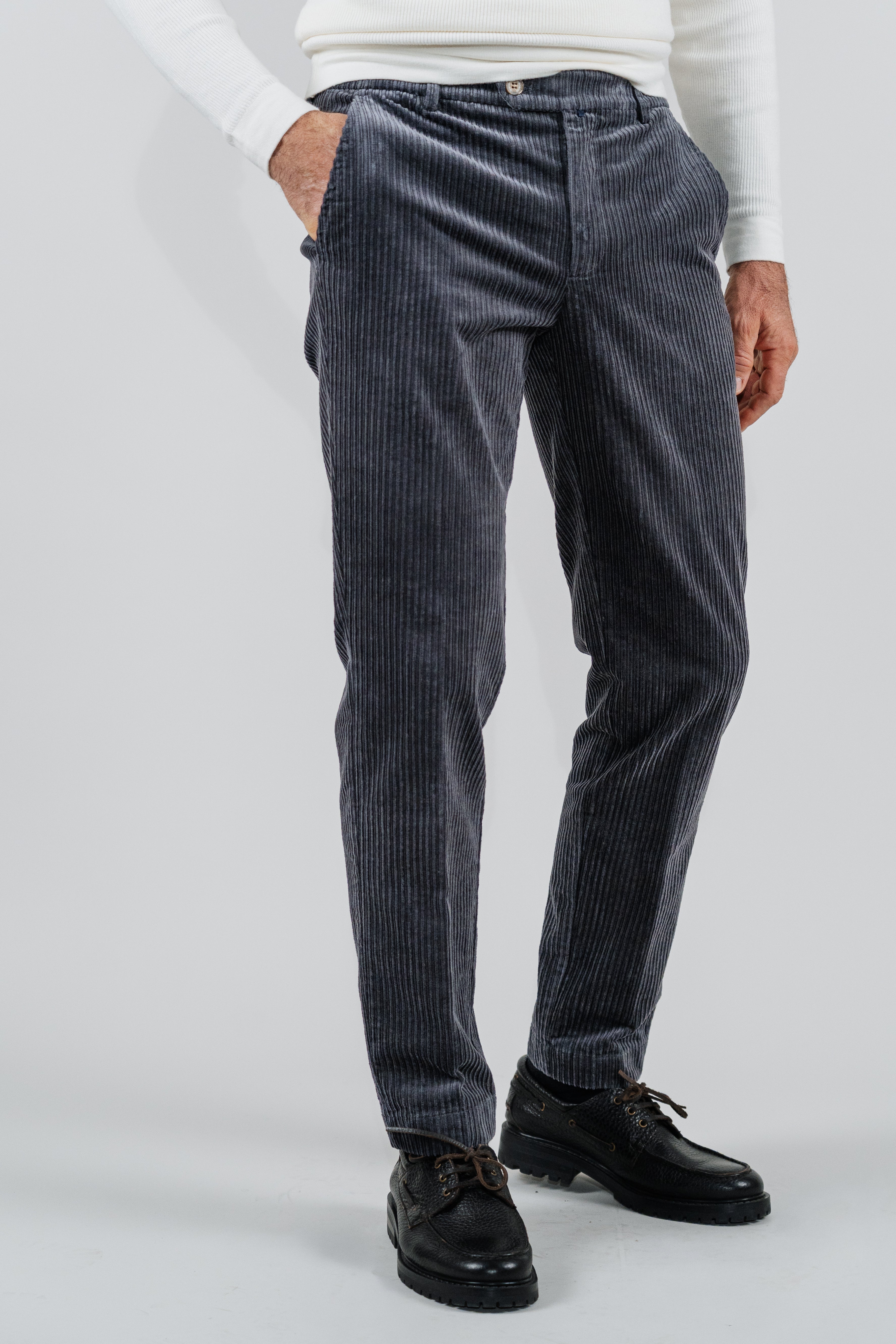 Pantalone chino in velluto a costa larga alternata pesante grigio slim fit