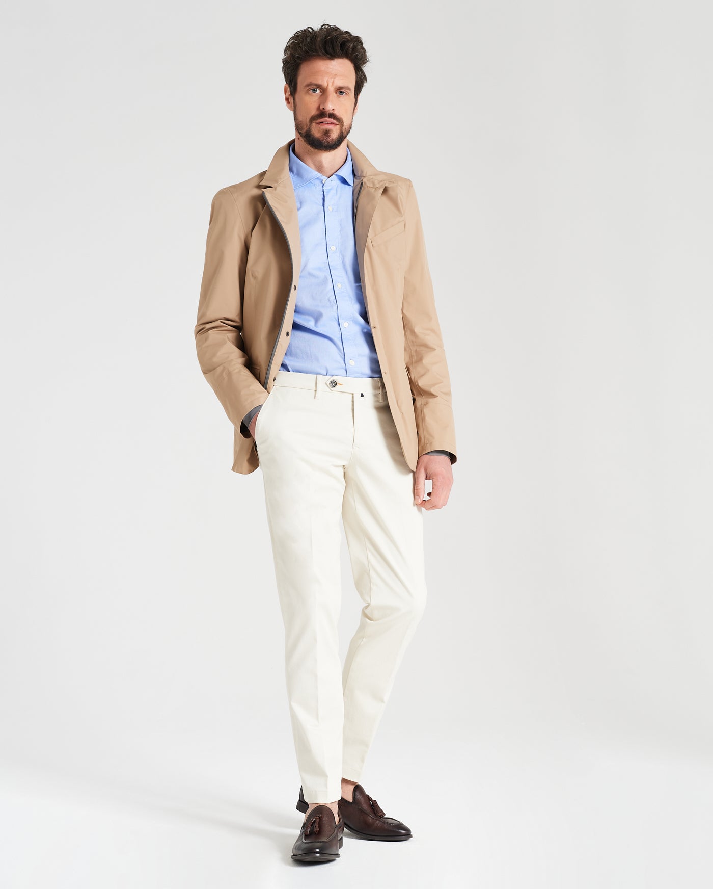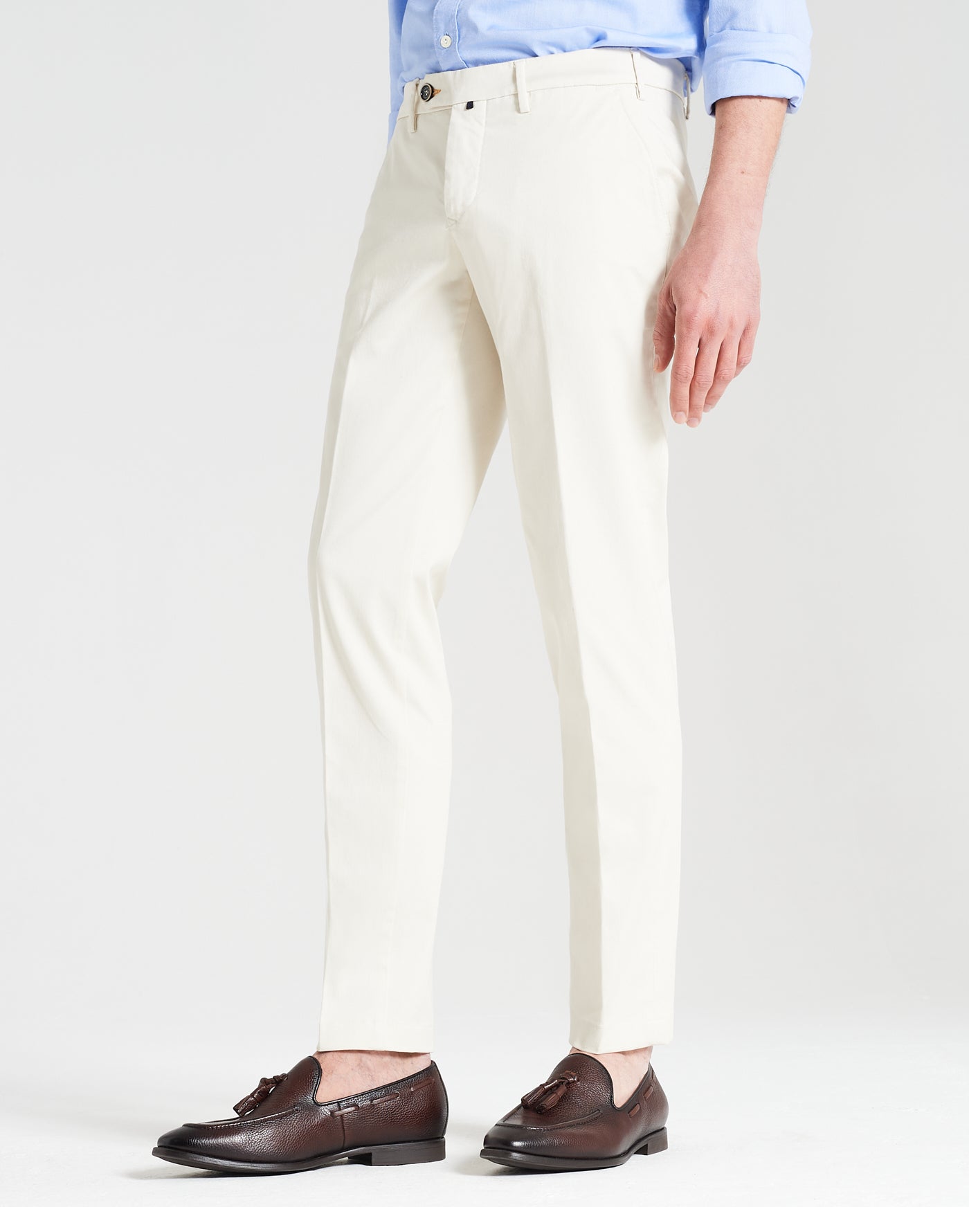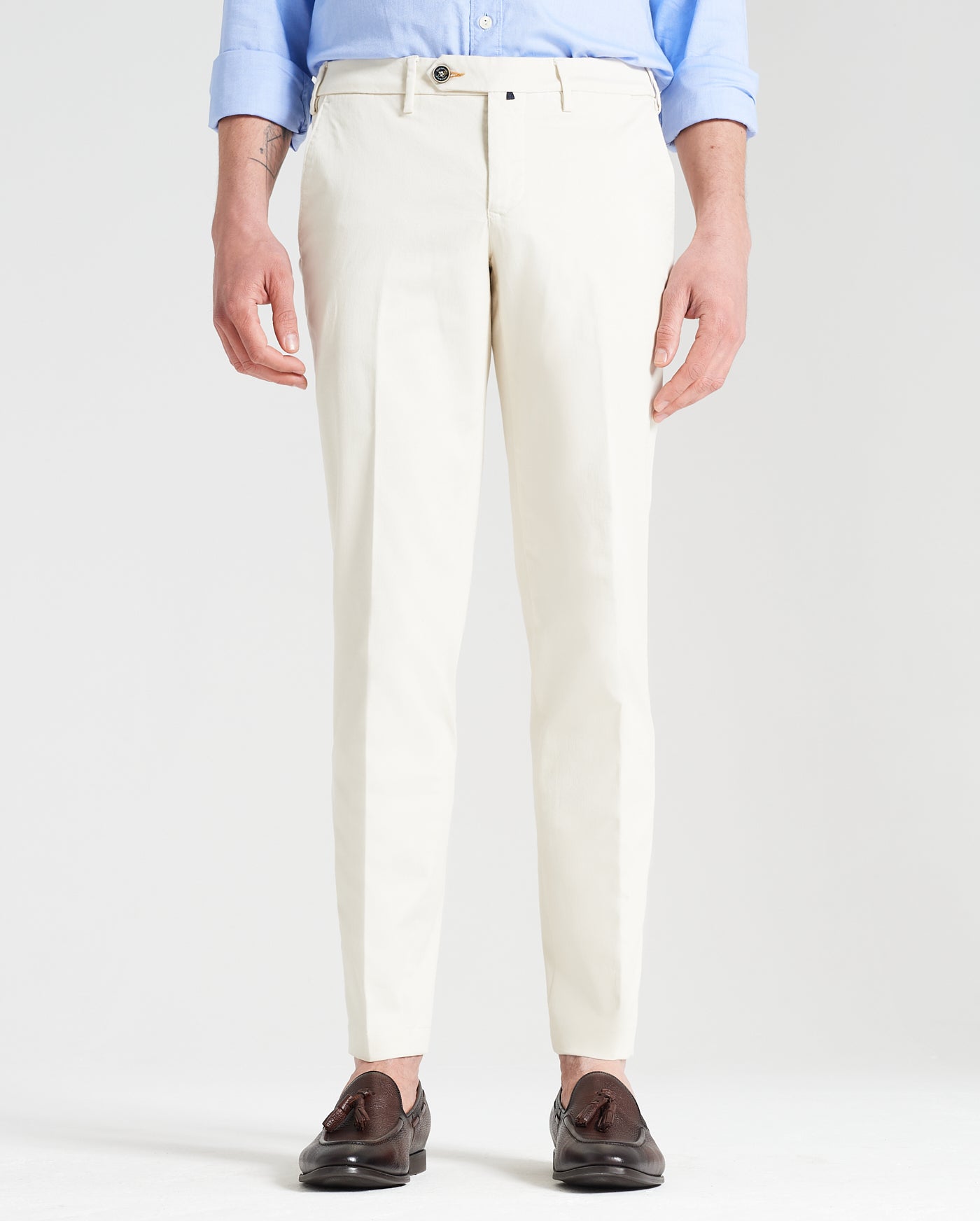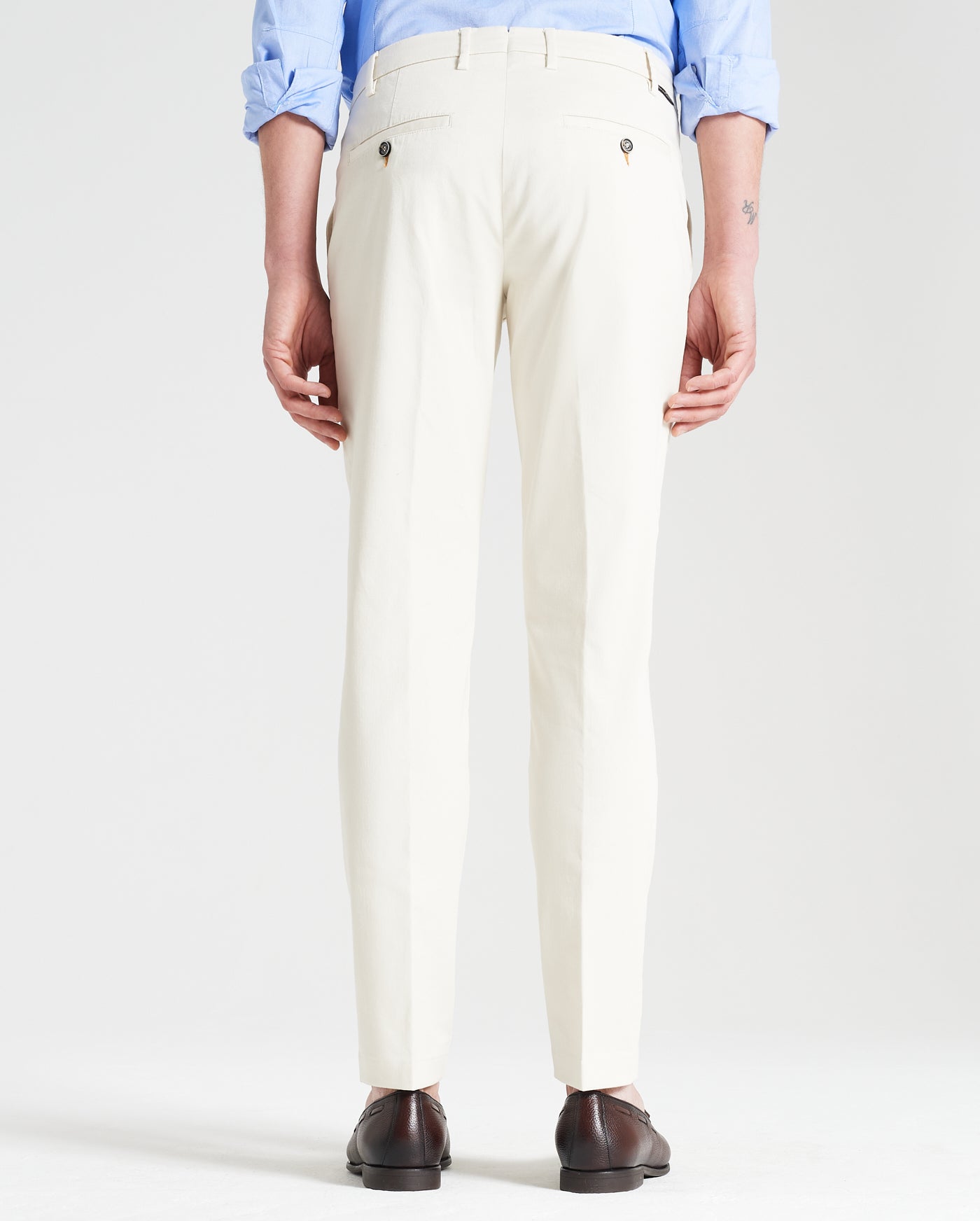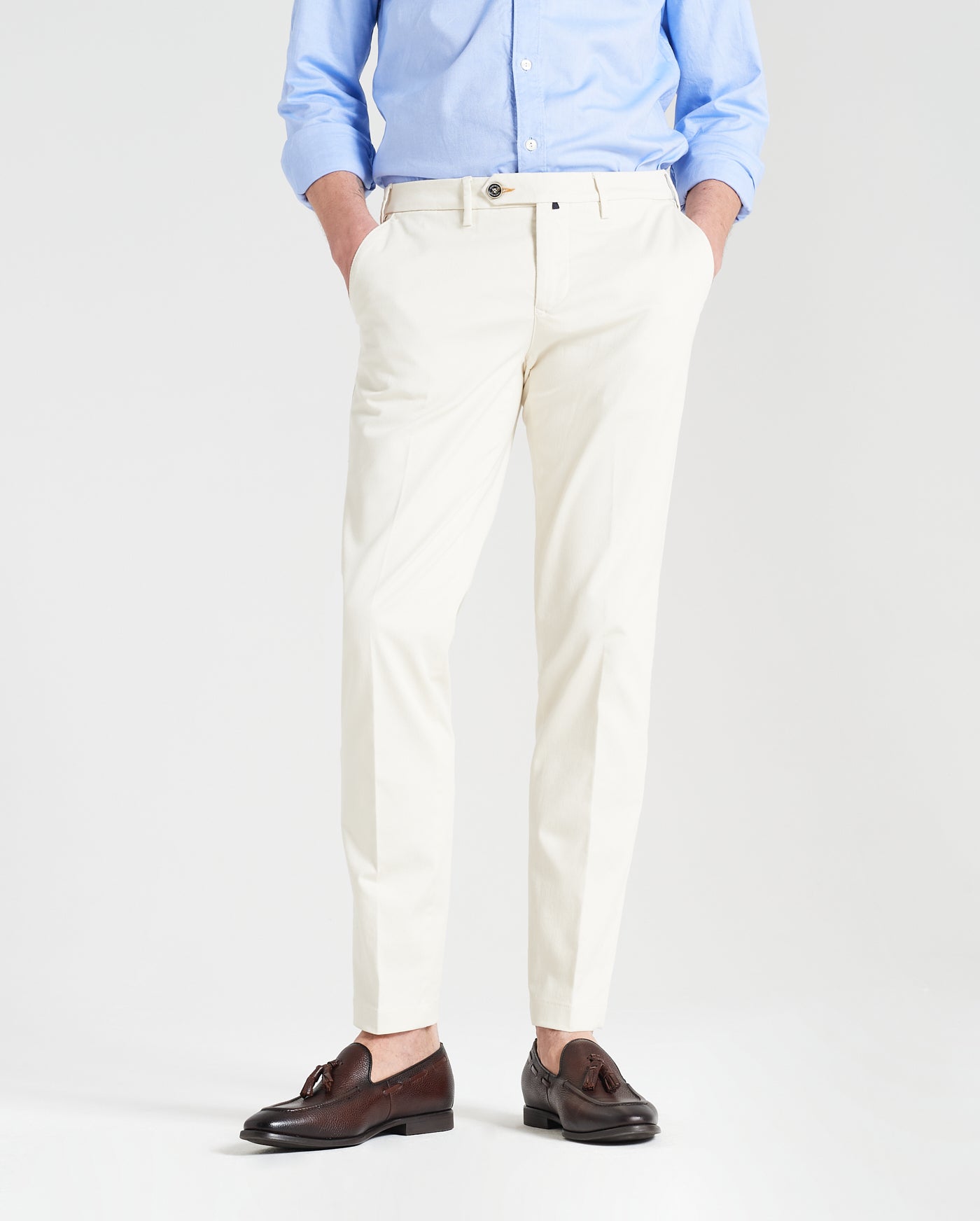 Pantalone chino in gabardina di cotone medio bianco panna slim fit