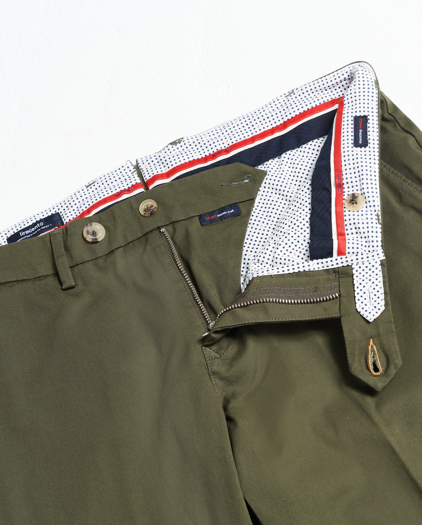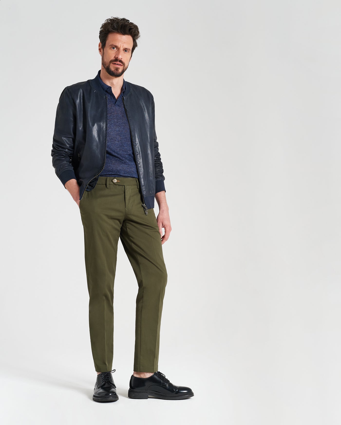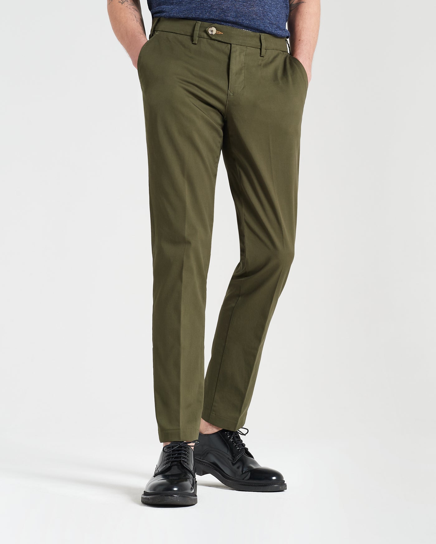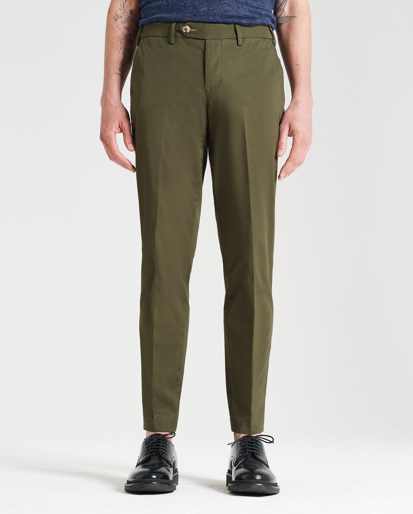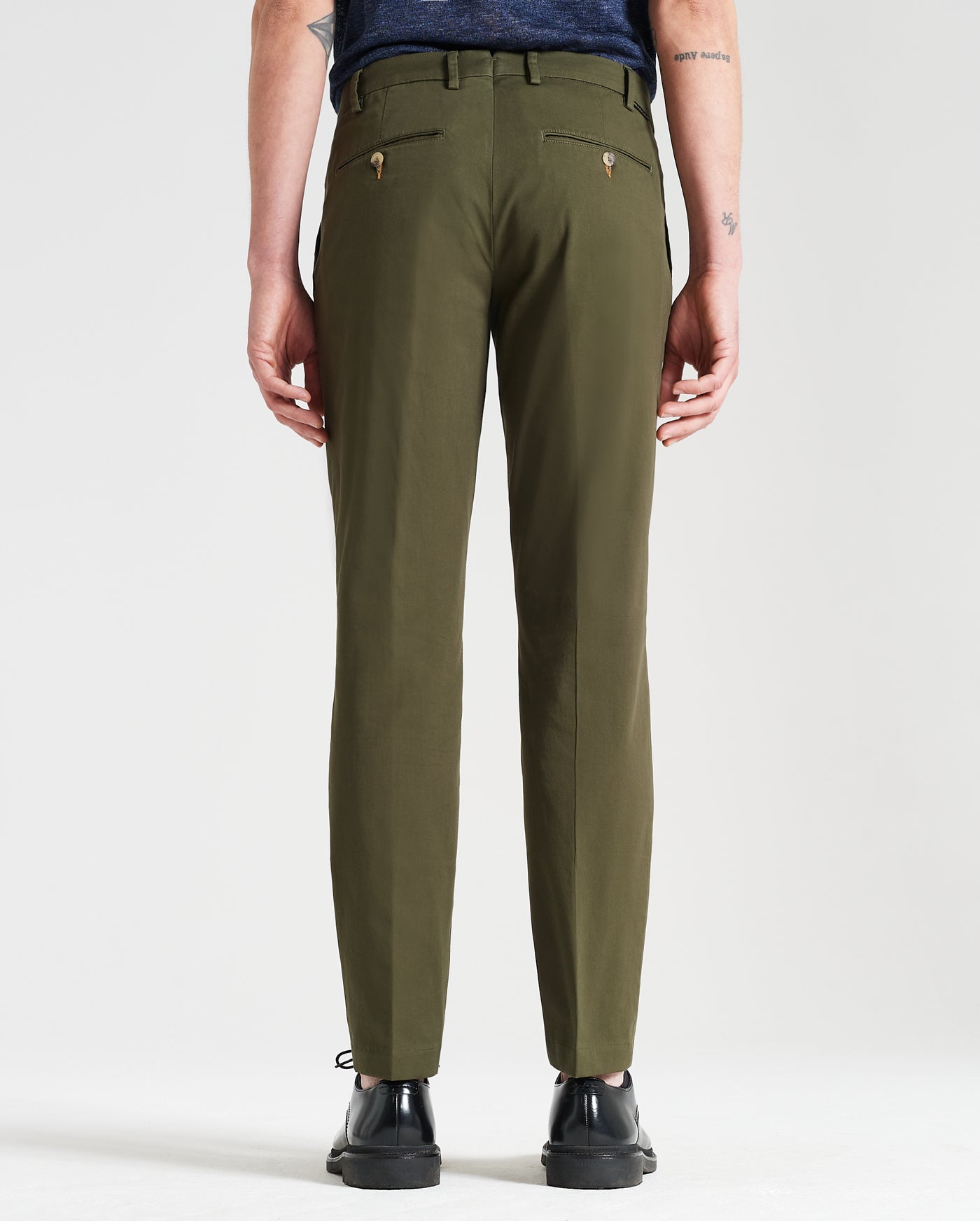 Pantalone chino in gabardina di cotone medio verde oliva slim fit