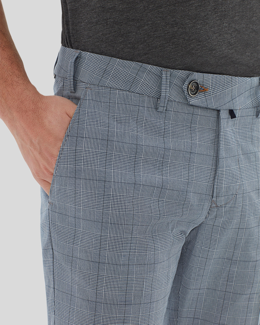 Pantalone chino in cotone medio Principe di Galles bianco grigio slim fit