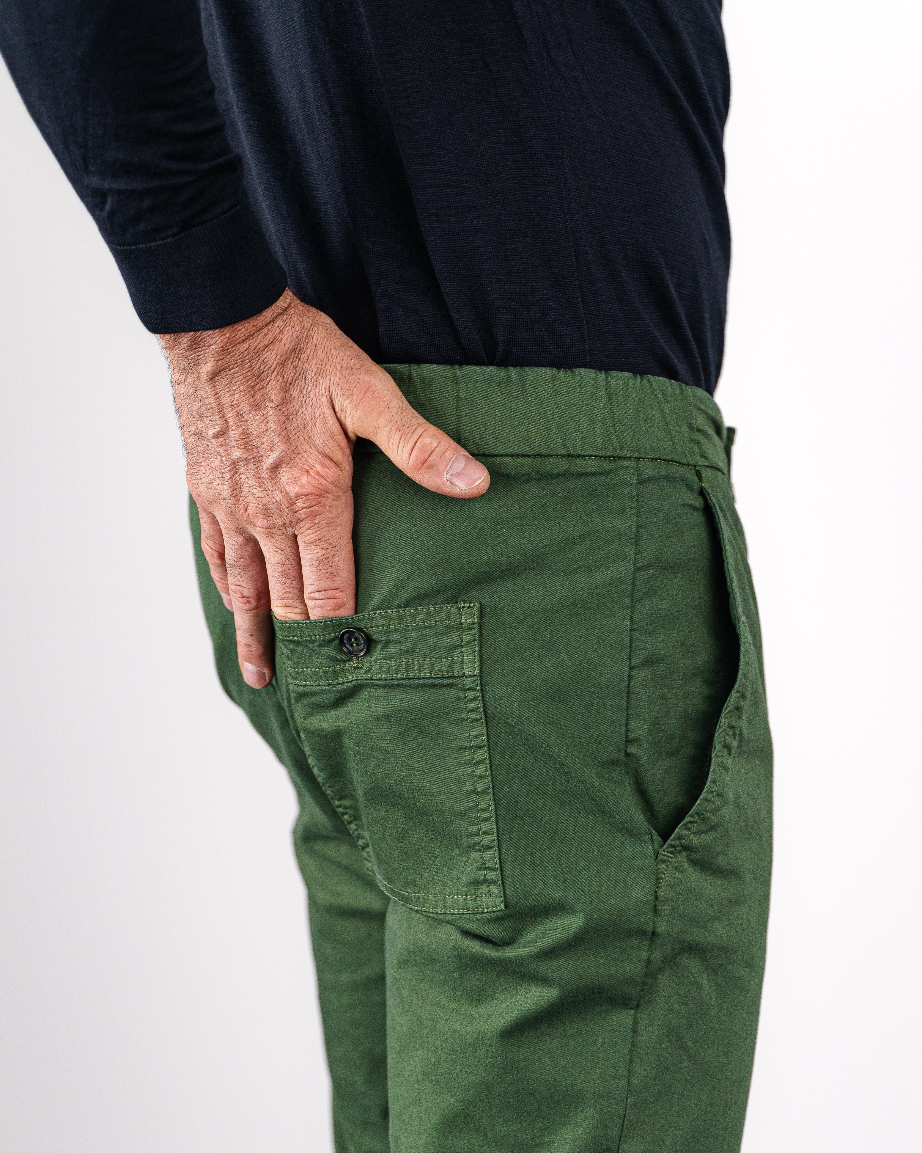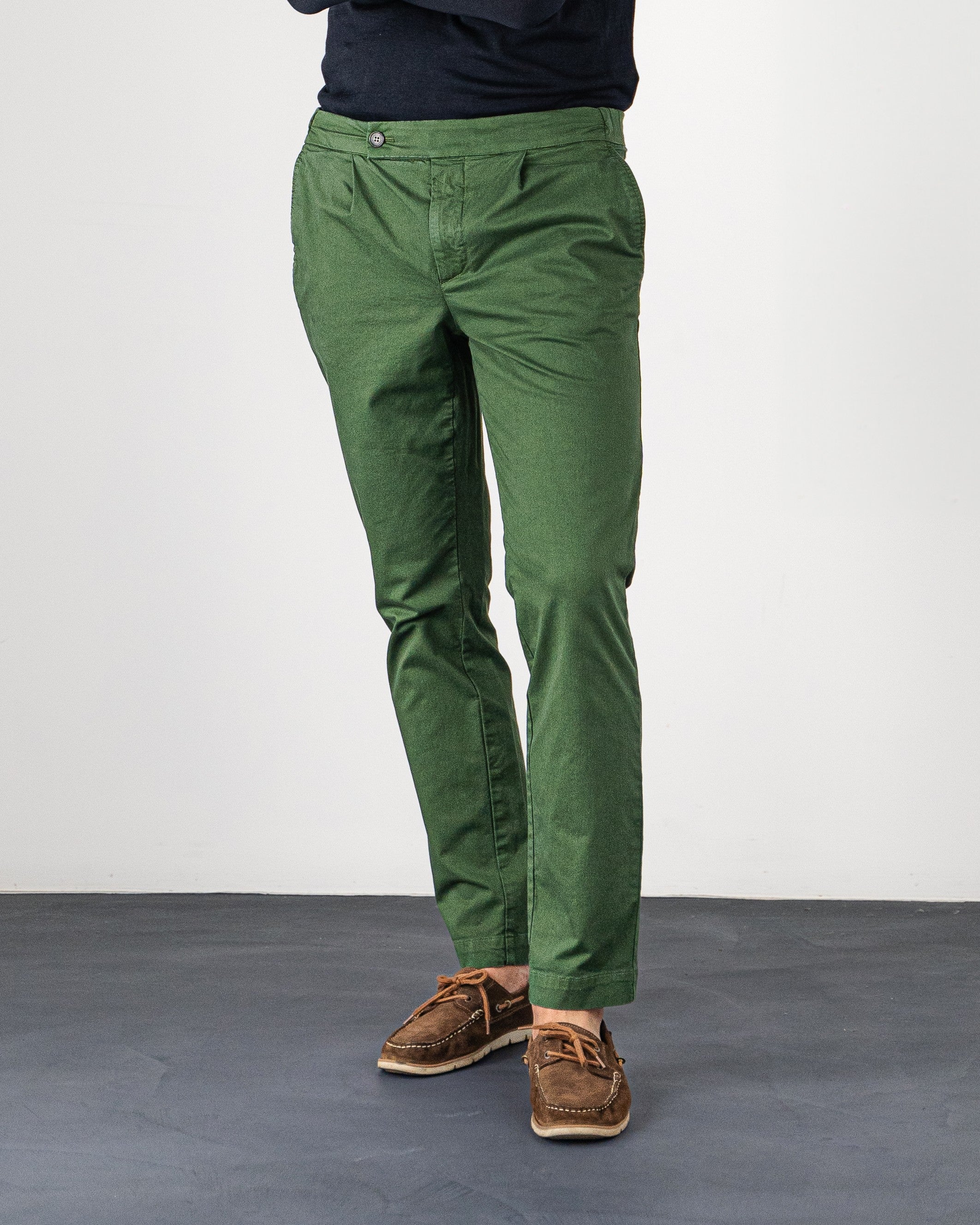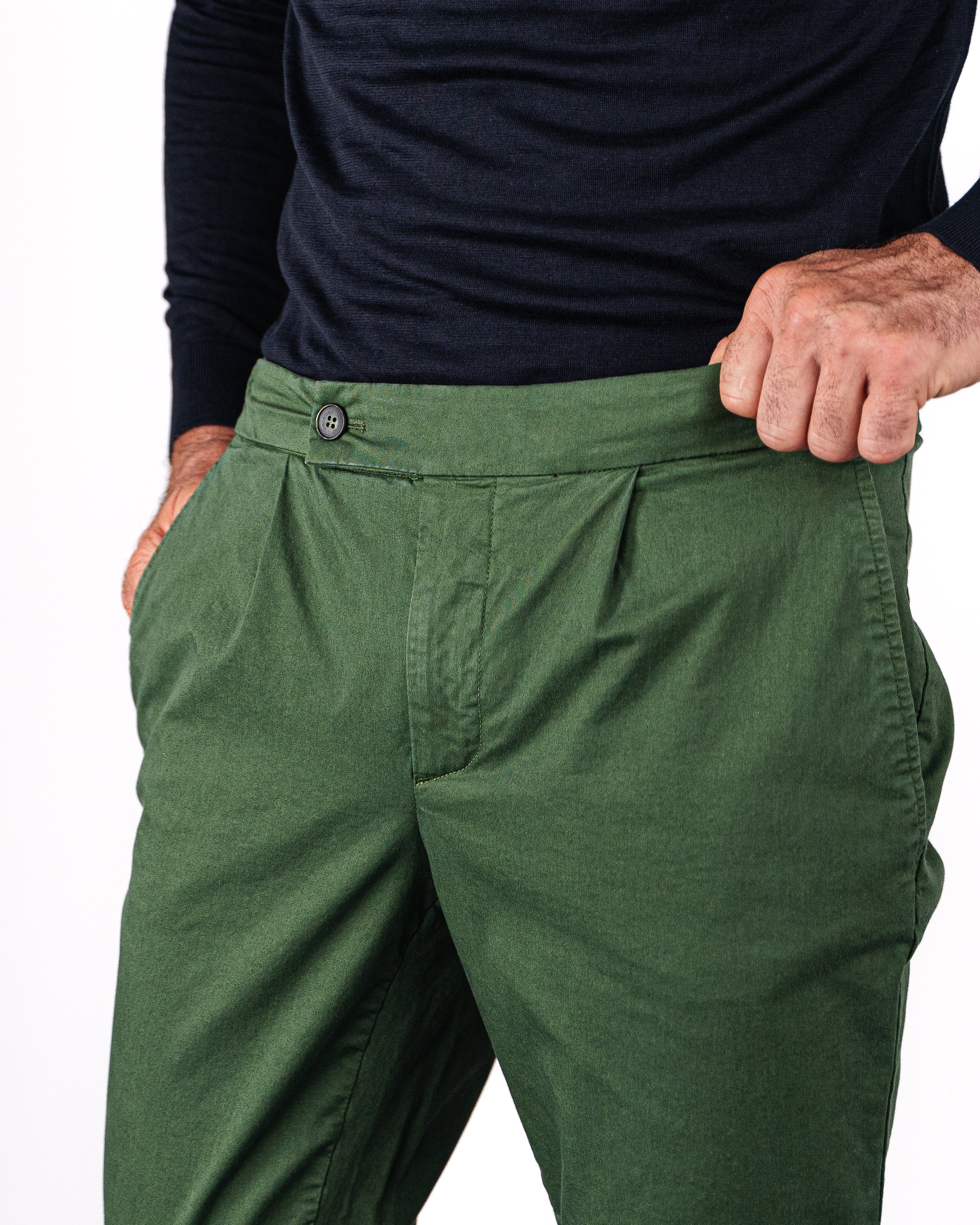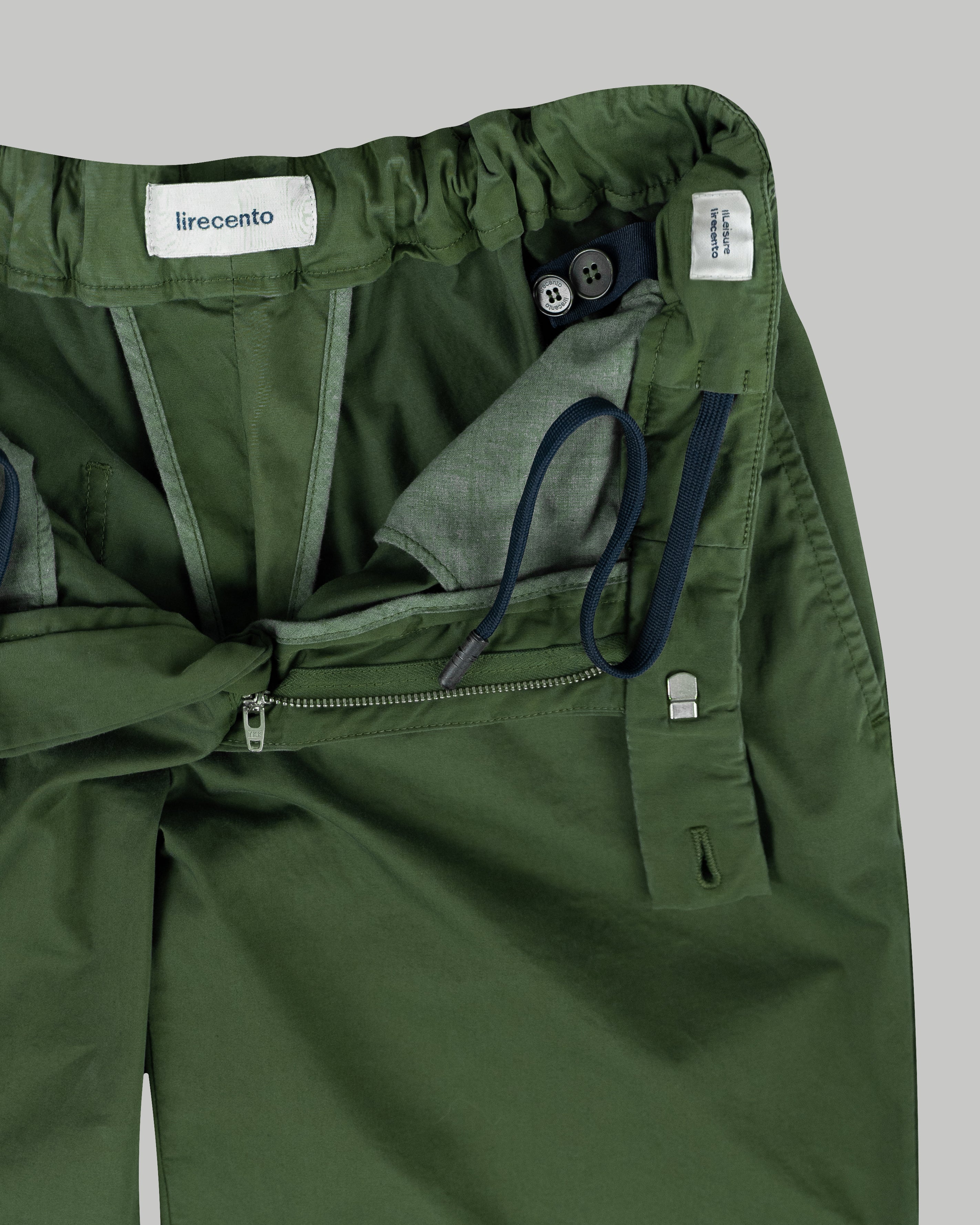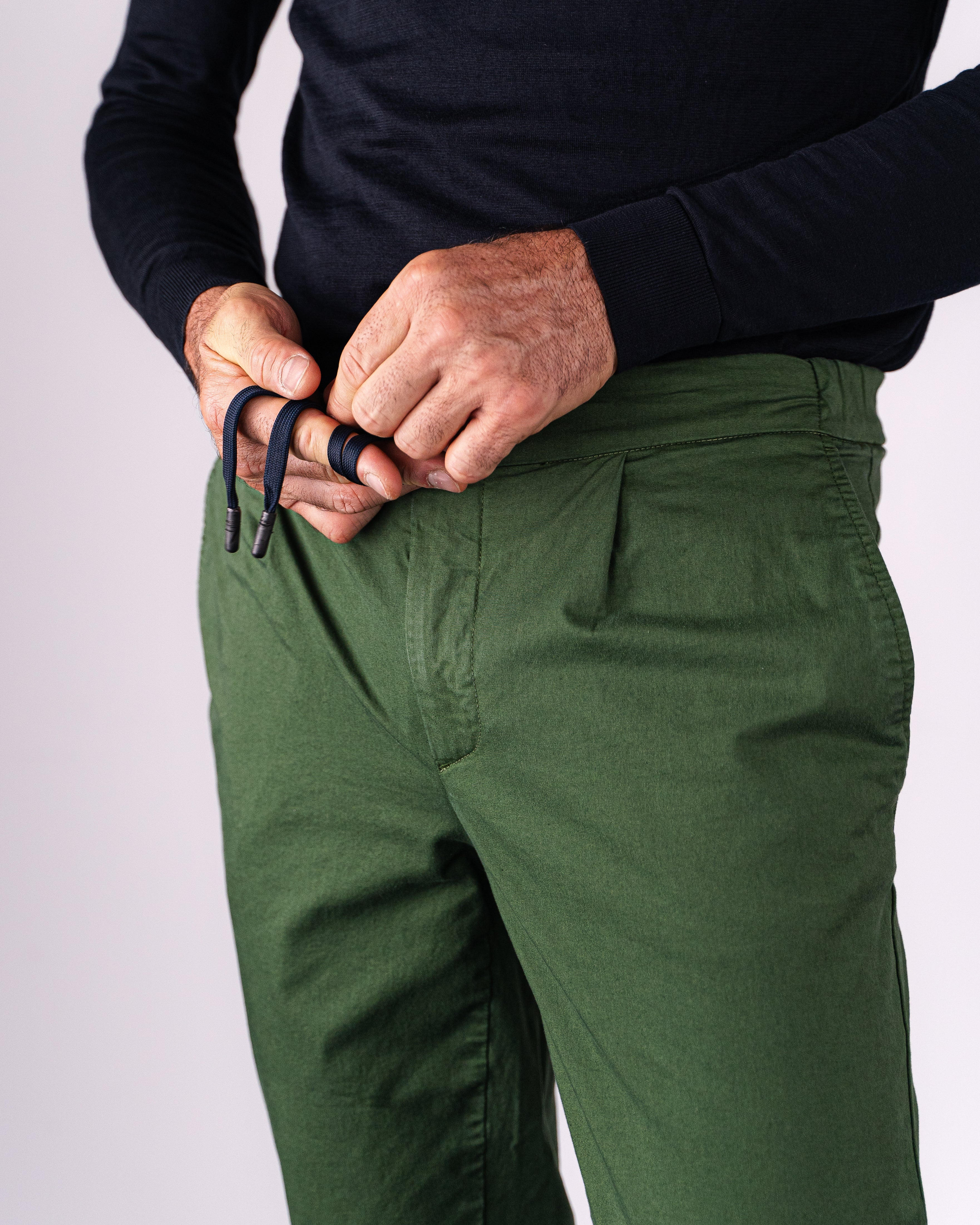 Pantalone chino con coulisse in gabardina di cotone medio verde regular fit