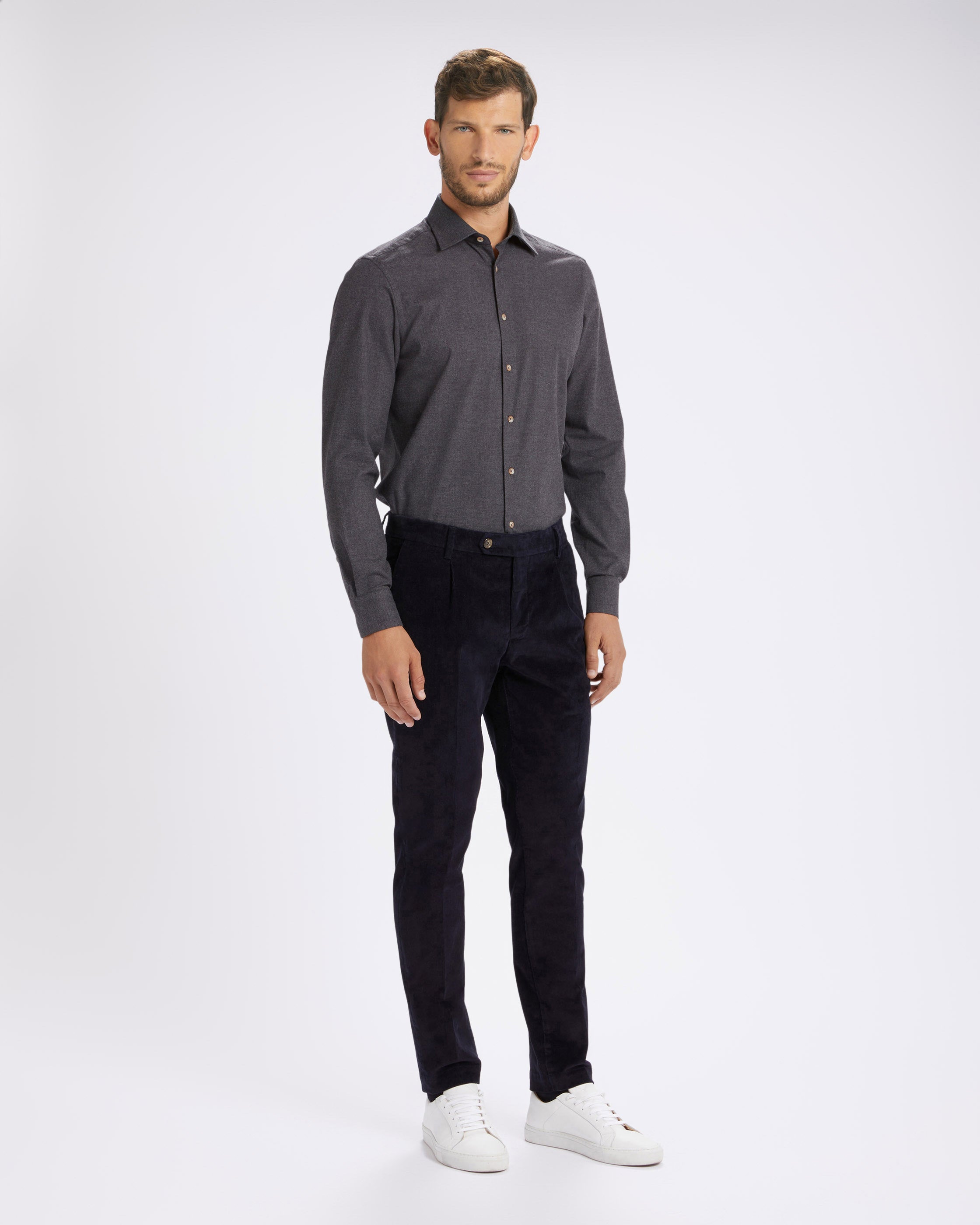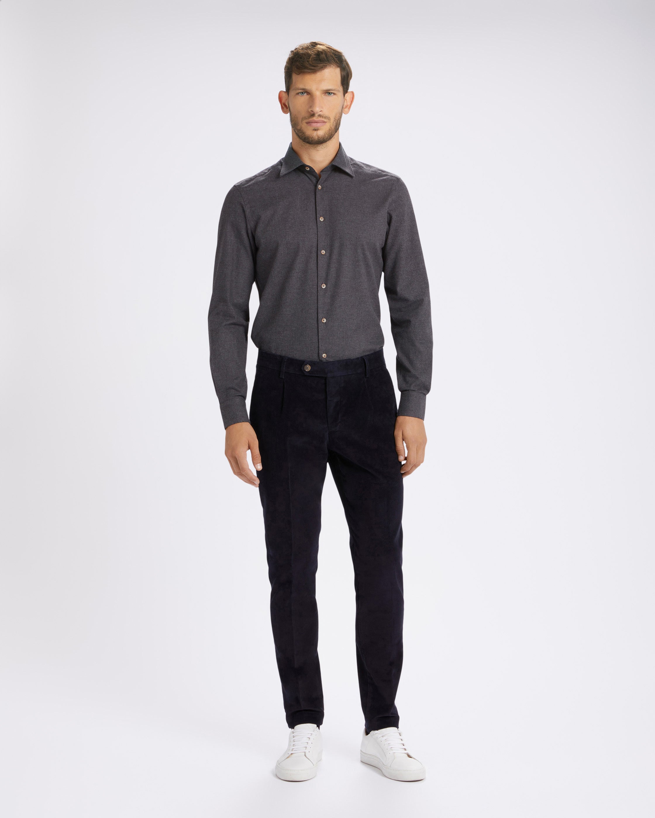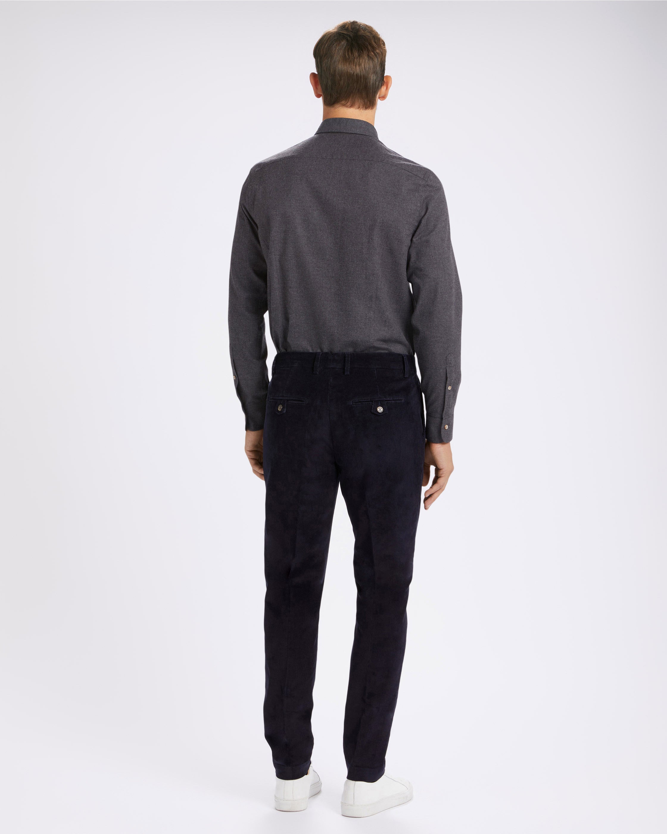 Pantalone chino con pince in velluto millerighe a costa fine pesante blu slim fit