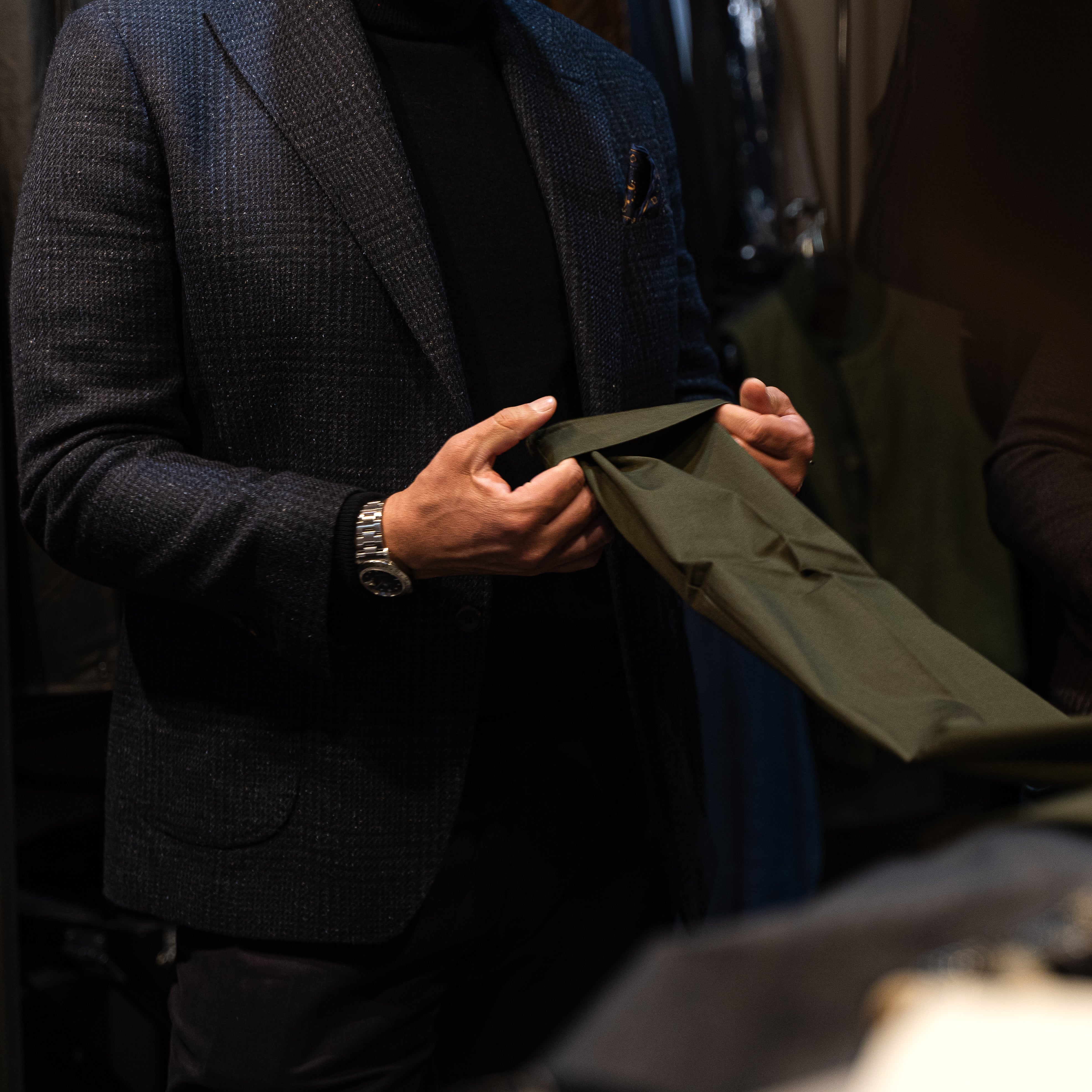 The most versatile model, to be worn every day, from breakfast at the bar to after dinner