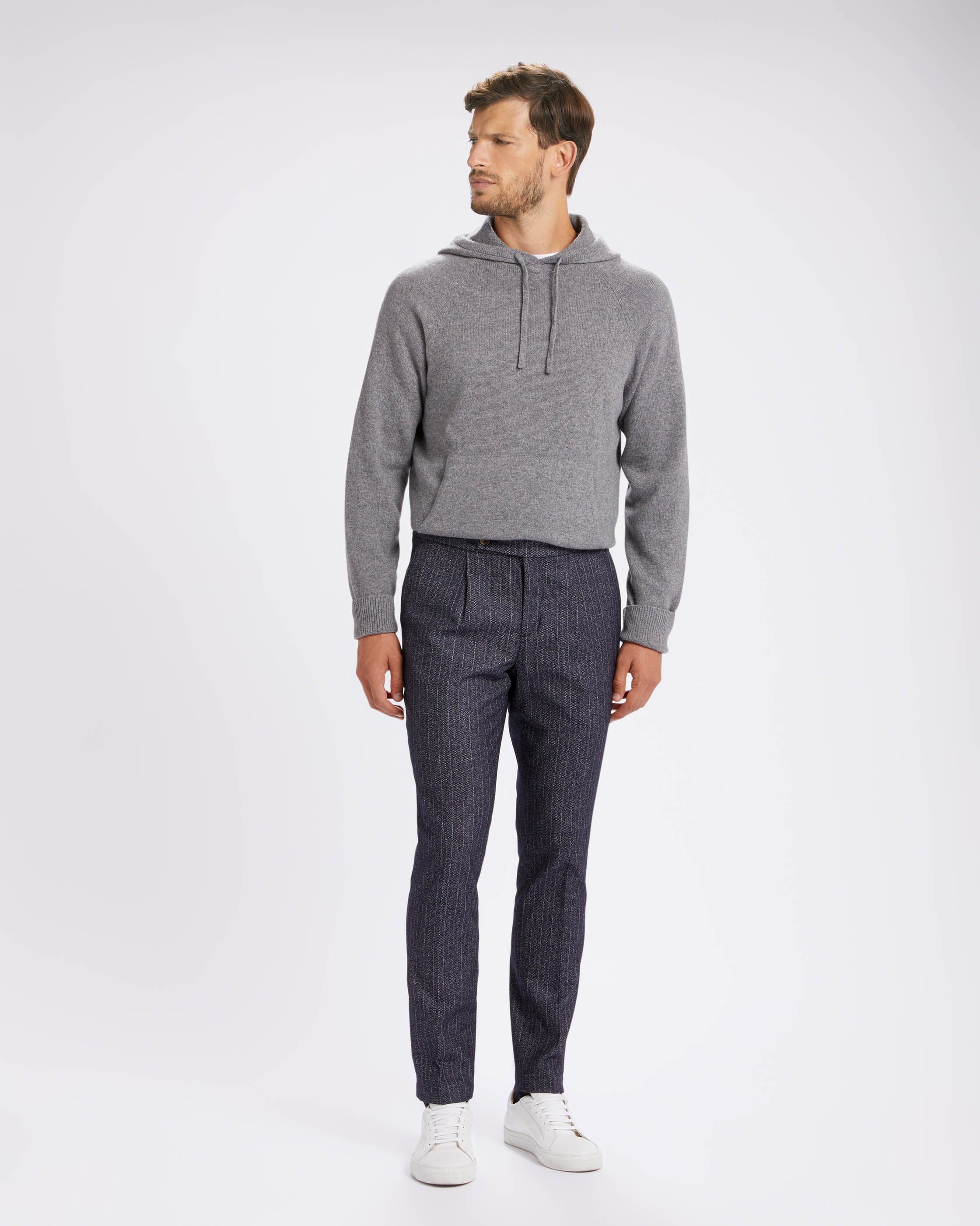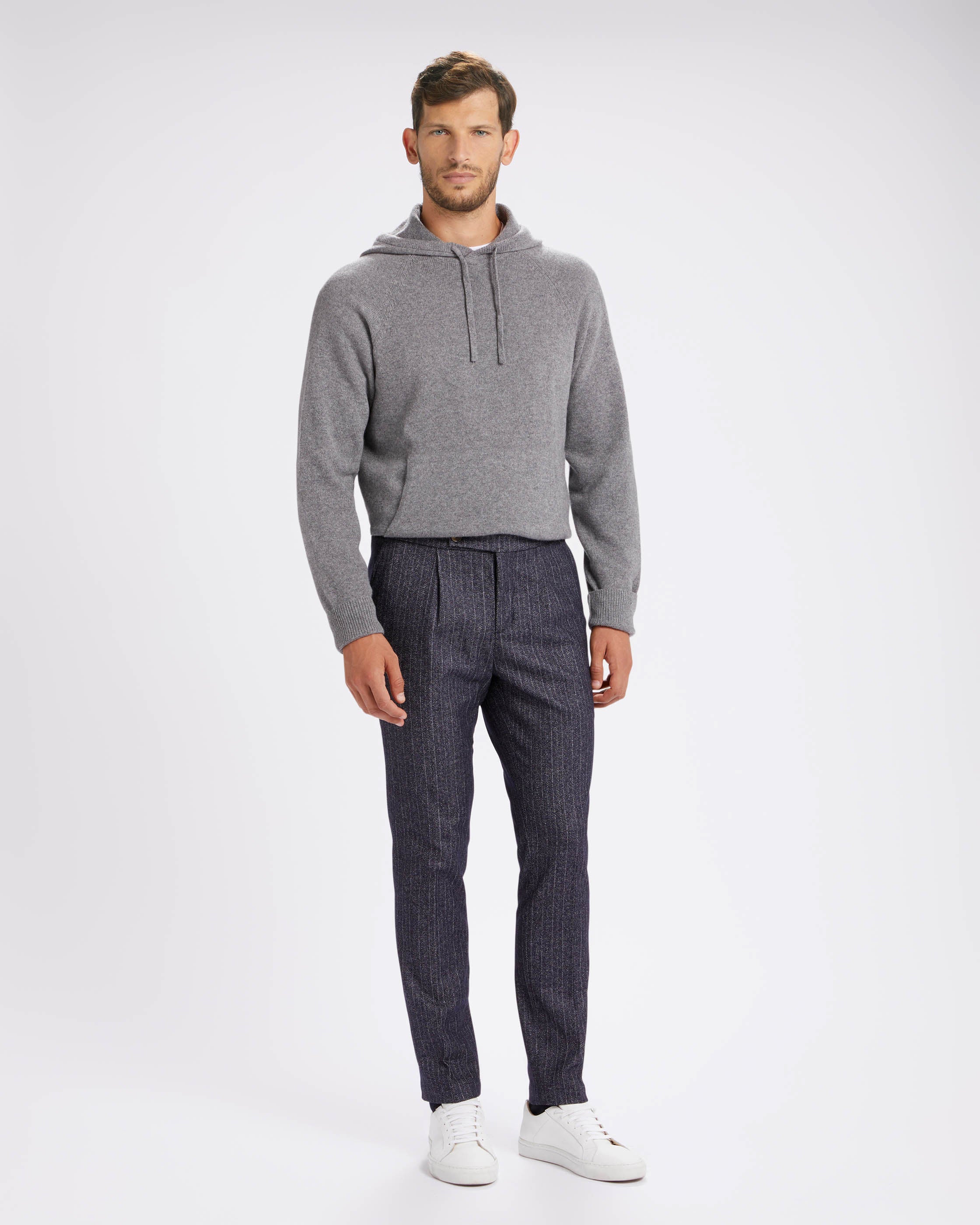 The Leisure is a model of trousers with a casual character, but always with attention to detail. The pleat gives a touch of elegance to a pair of trousers with a sporty inspiration, the internal drawstring manages to increase the feeling of comfort in those who wear these trousers, already present thanks to the regular, comfortable fit.