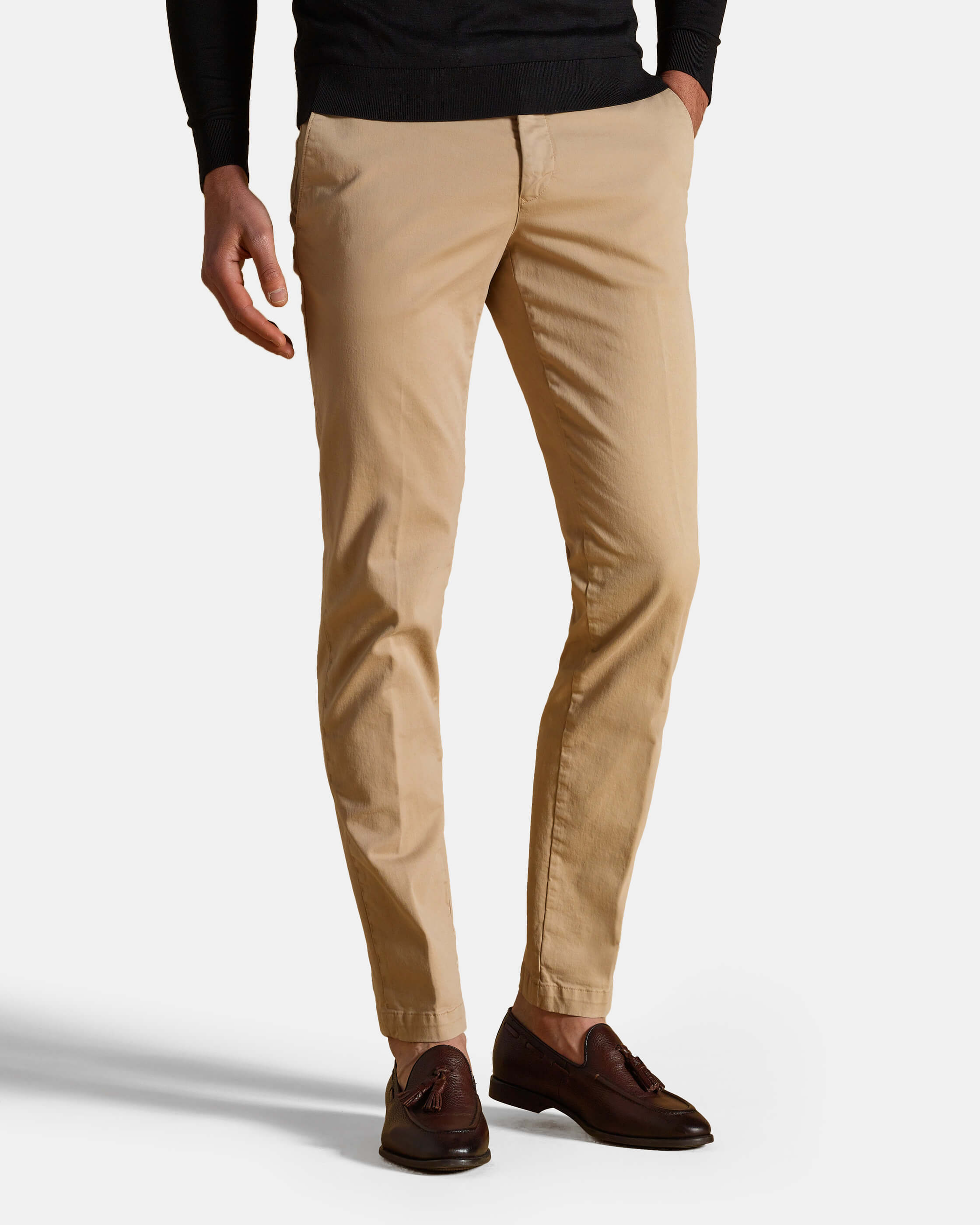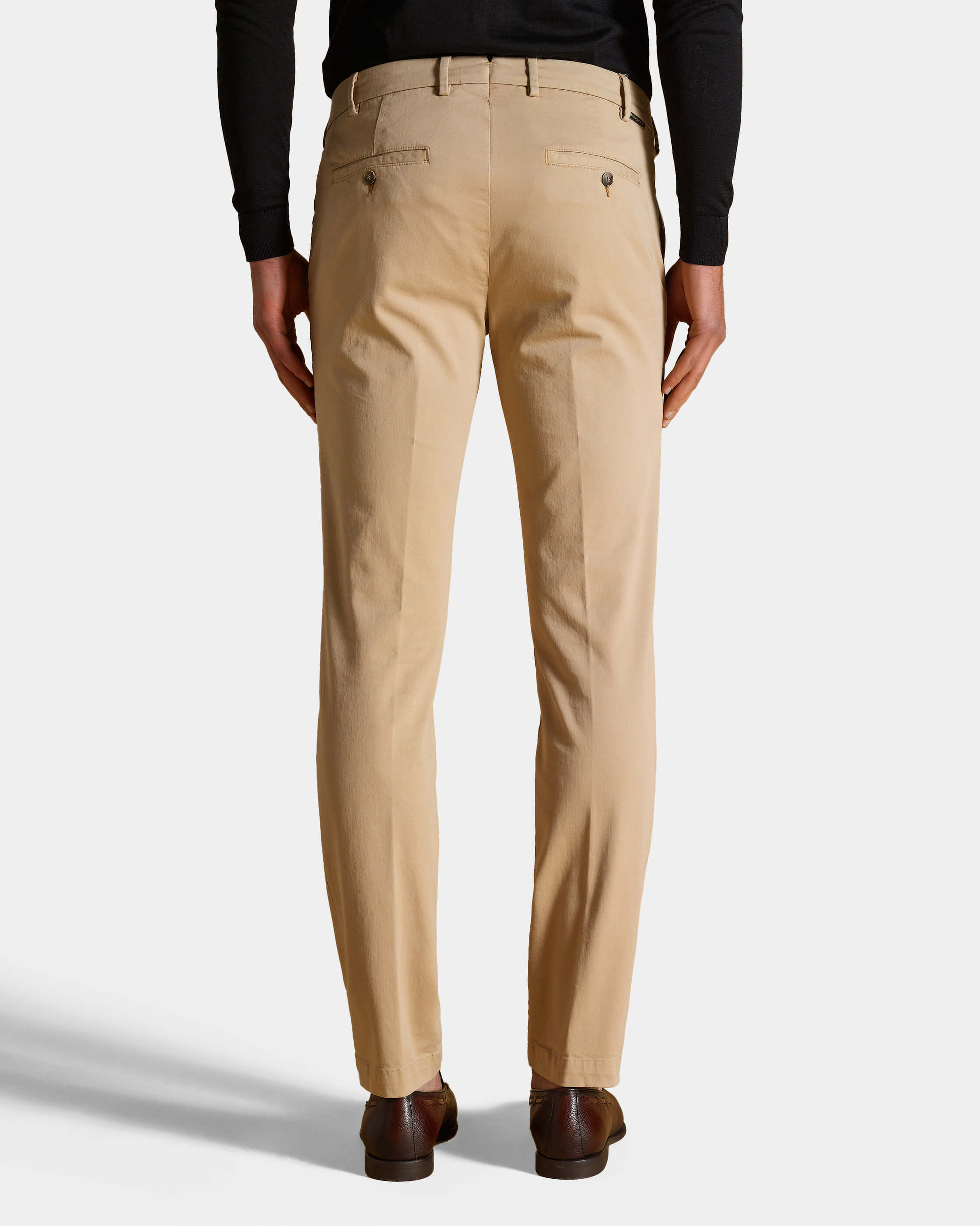Pantalone chino in gabardina di cotone medio beige cammello slim fit