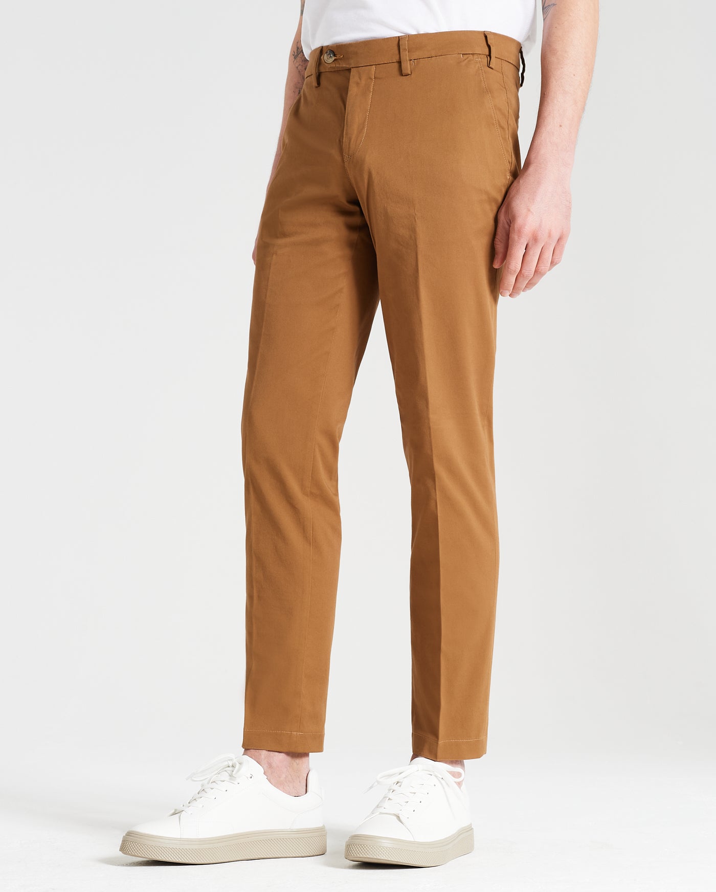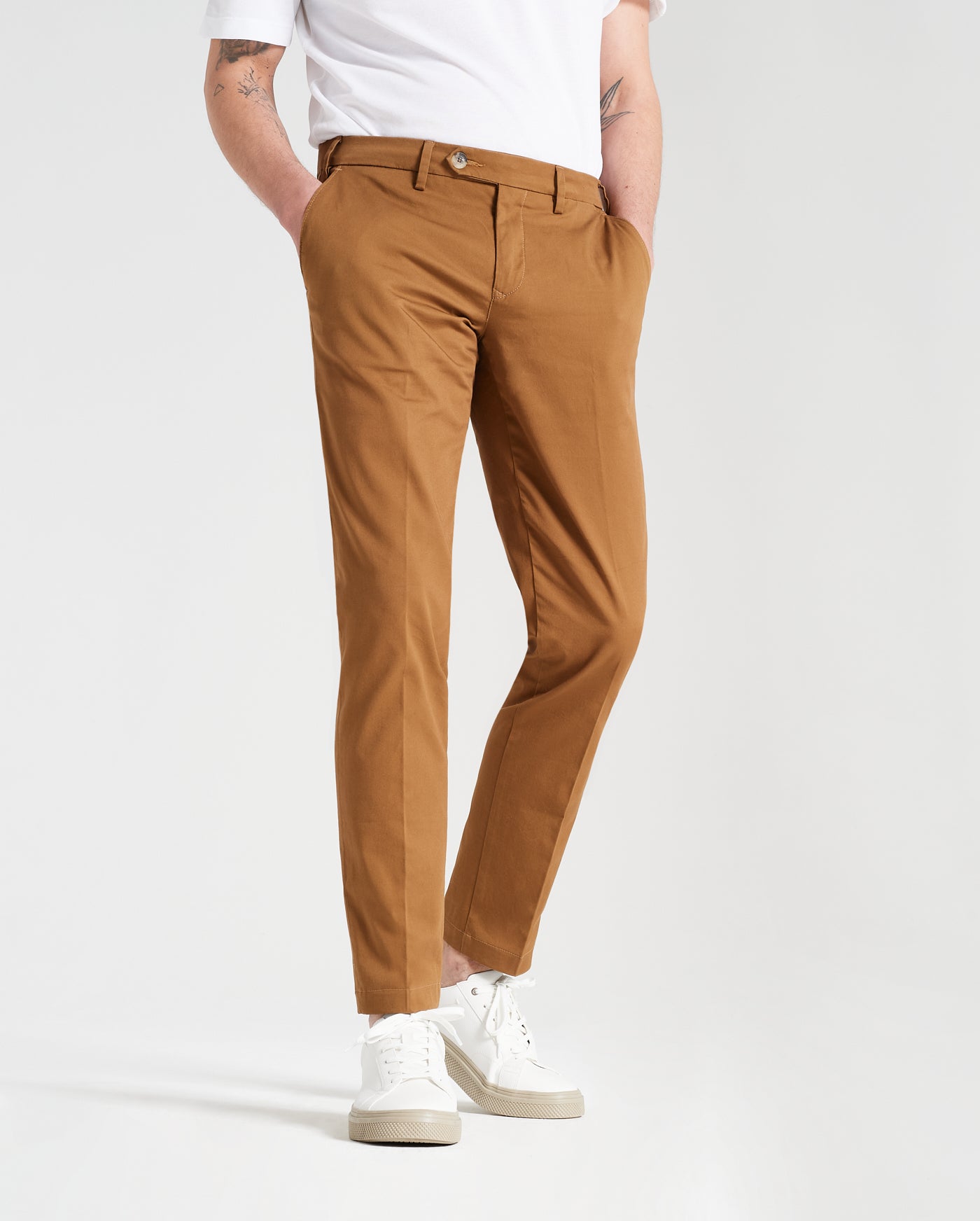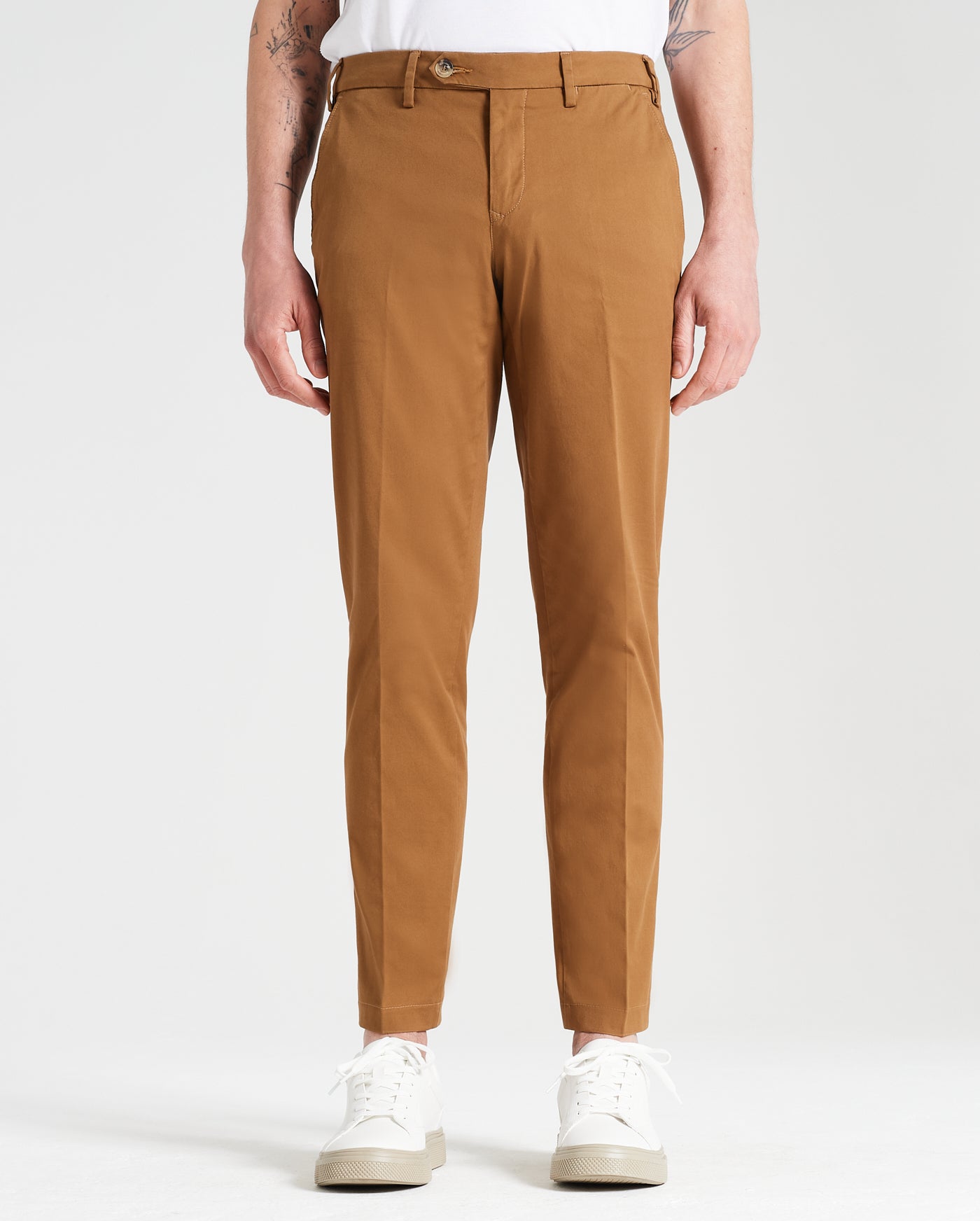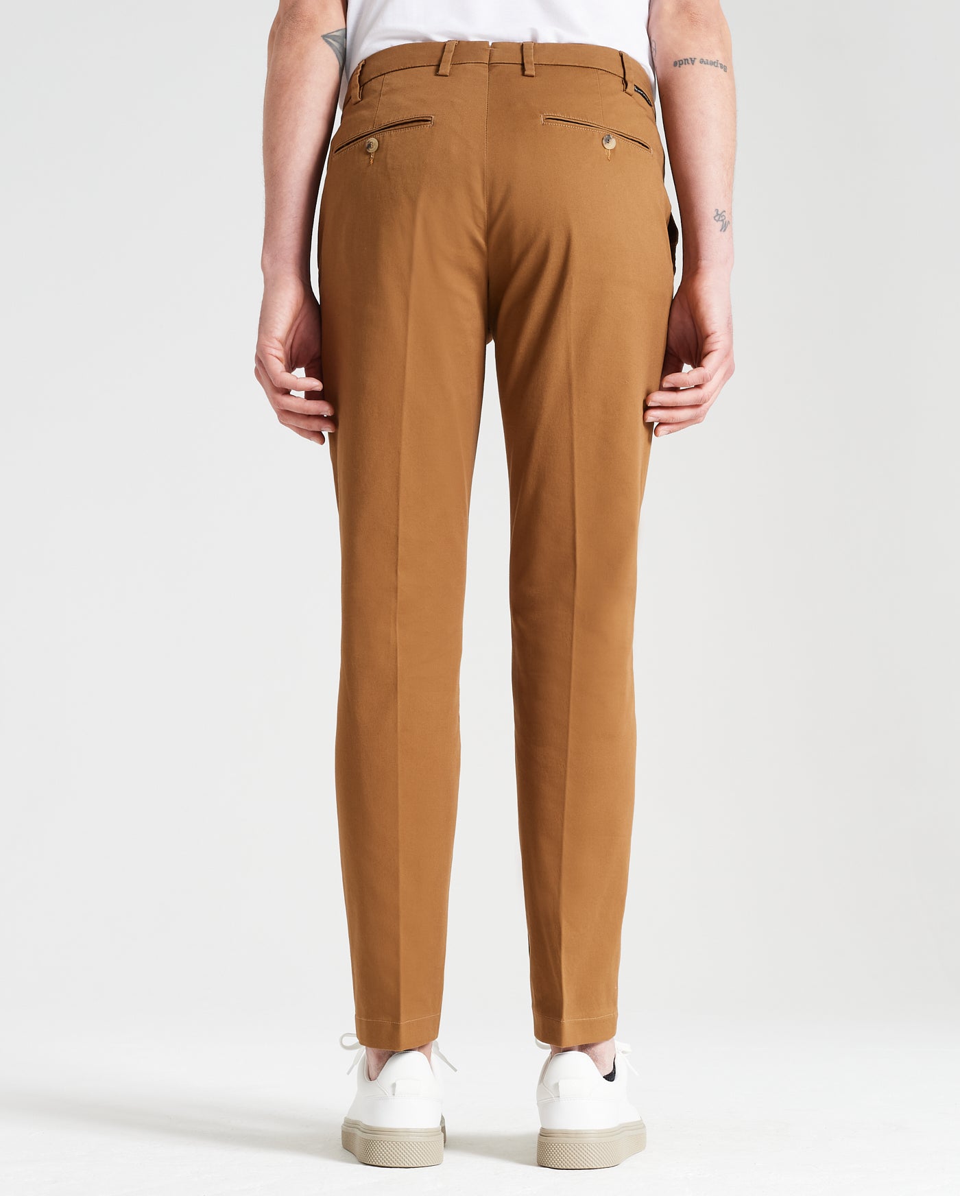 Pantalone chino in gabardina di cotone medio marrone terra di Siena slim fit
