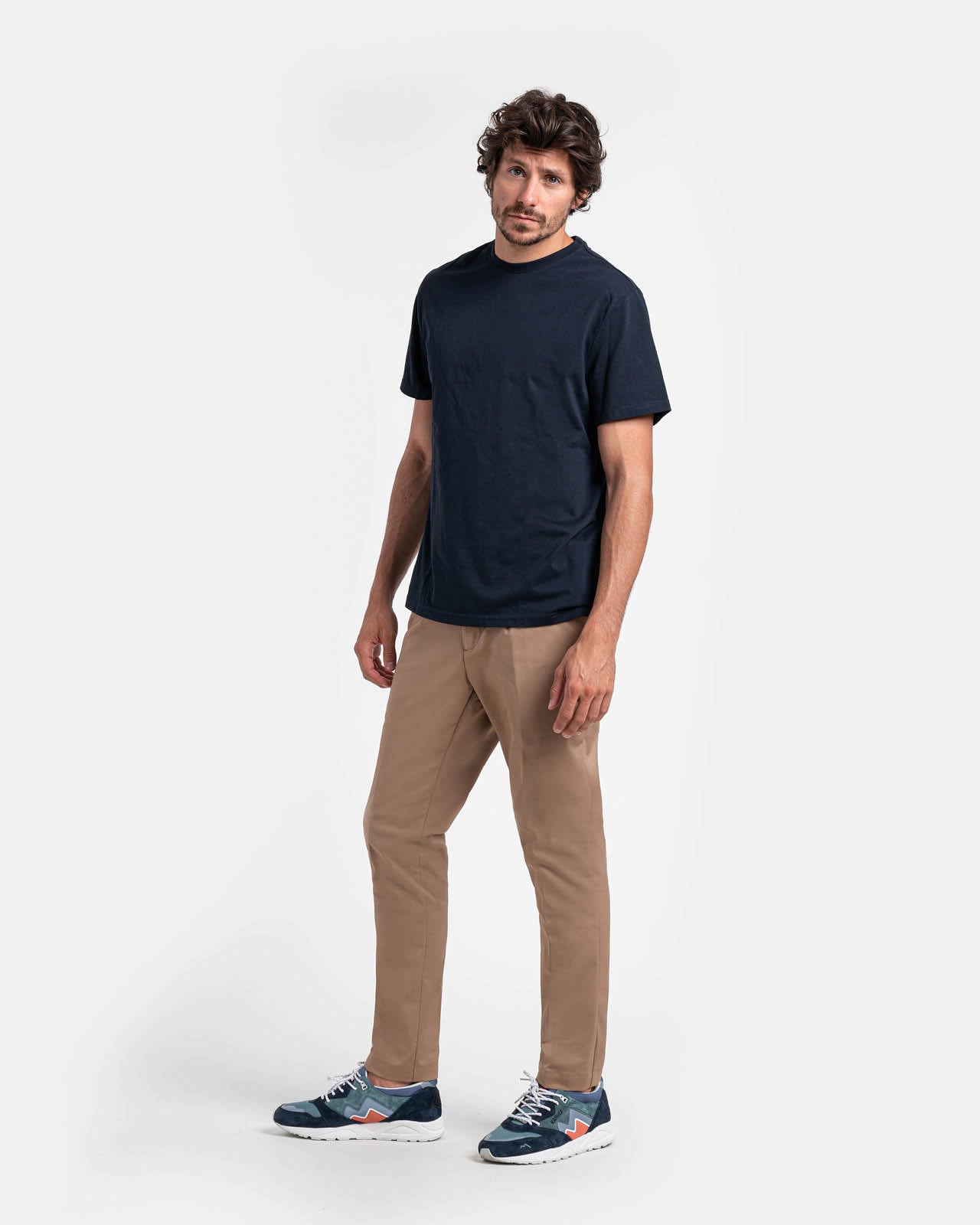 Il Leisure è un modello di pantaloni dal carattere casual, ma sempre curato nel dettaglio. La pince dona un tocco di eleganza ad un pantalone d'ispirazione sportiva, la coulisse interna riesce ad aumentare la sensazione di comfort in chi indossa questi pantaloni, già presente grazie alla vestibilità regular, comoda.