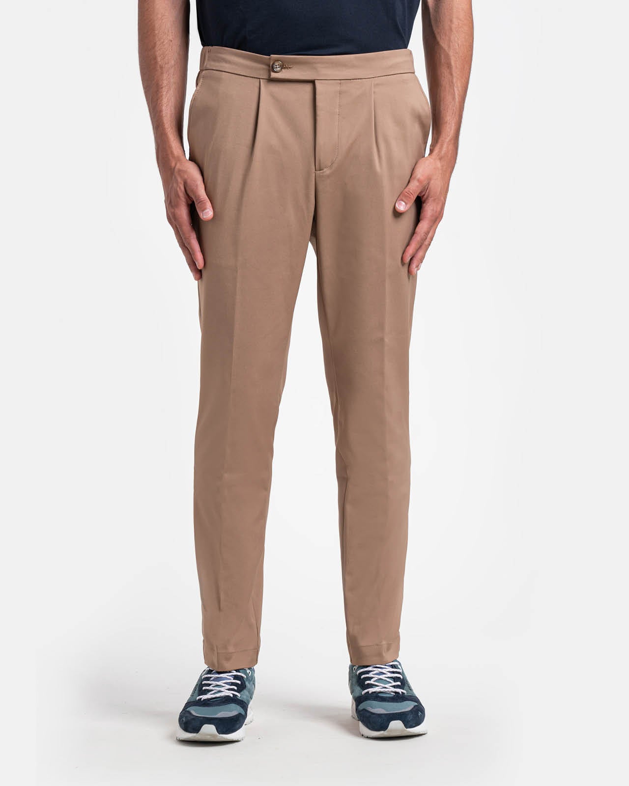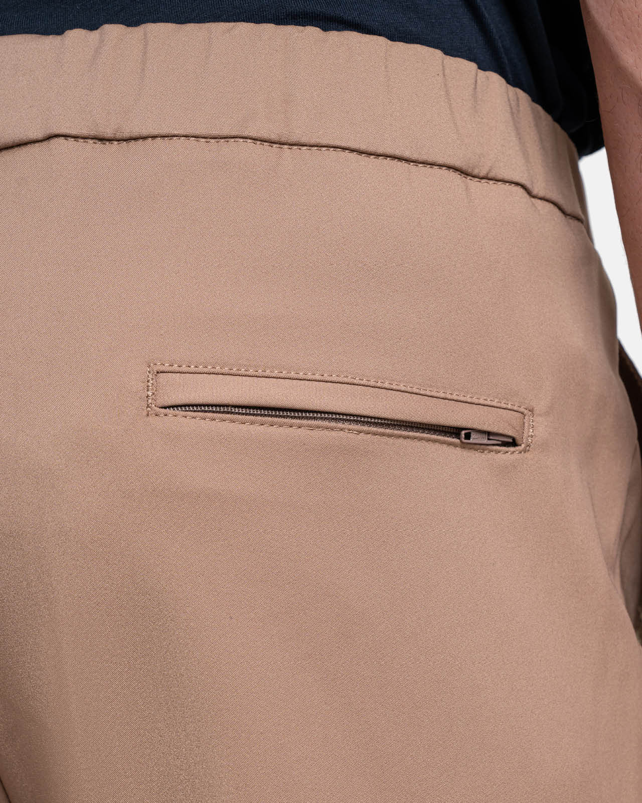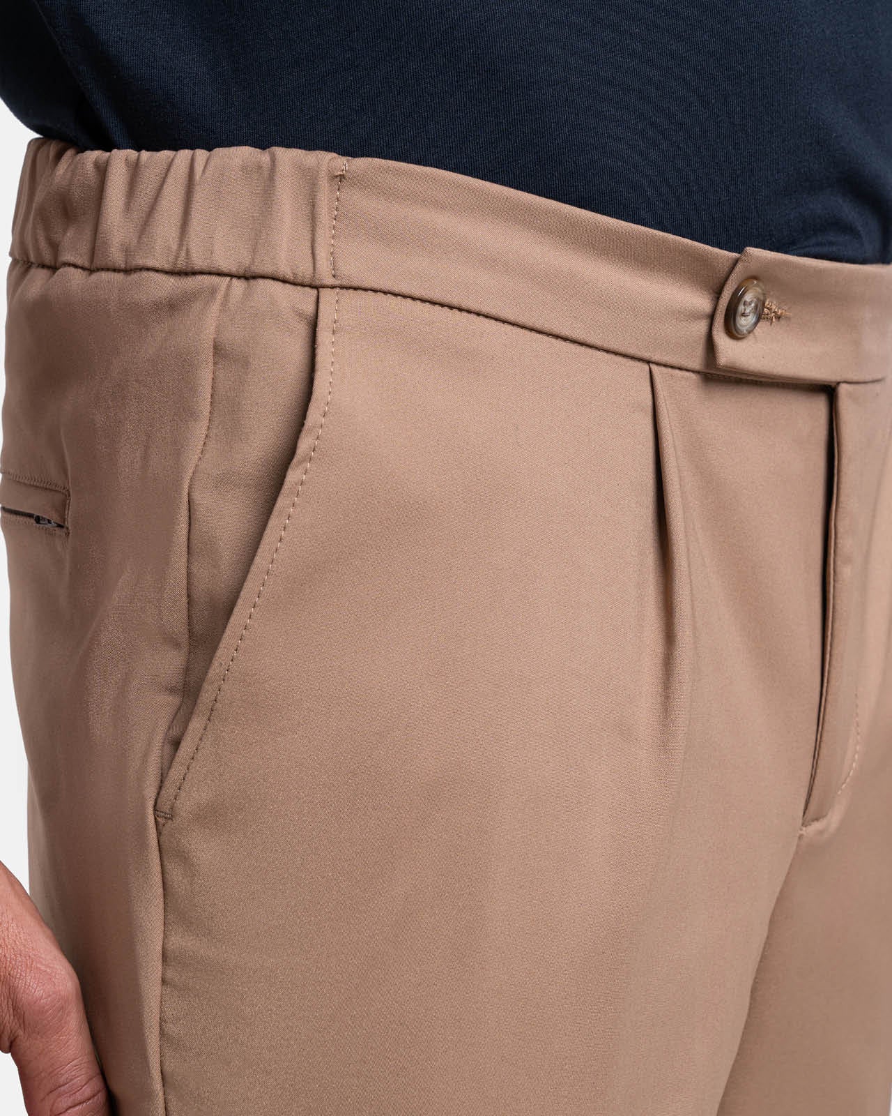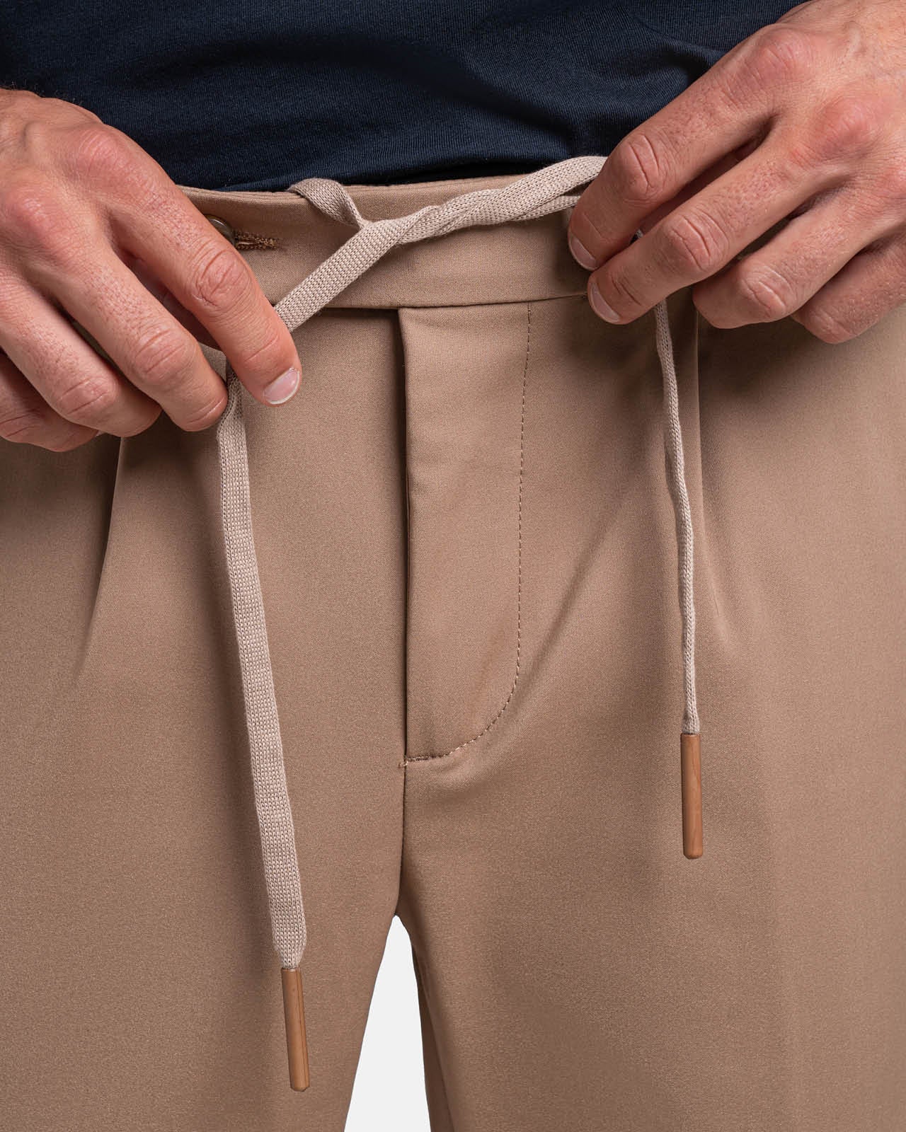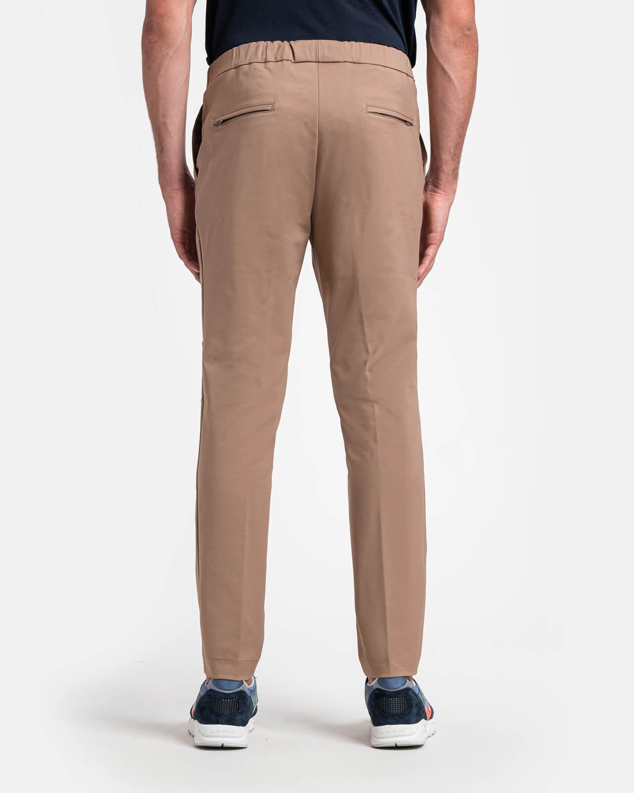 Pantalone chino con coulisse in cotone e nylon leggero marrone fango regular fit
