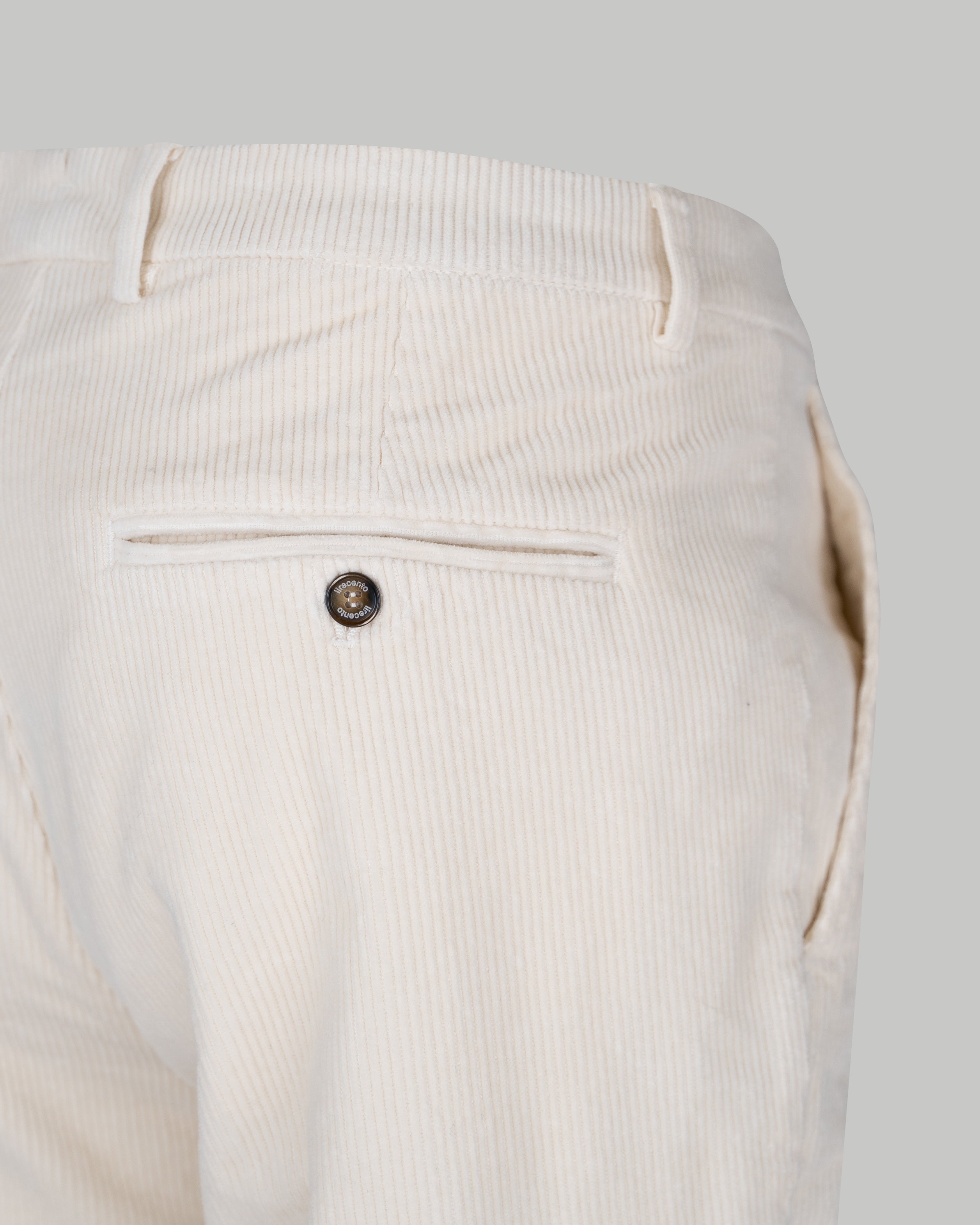 Pantalone chino in velluto di cotone pesante a costa larga francese bianco burro slim fit