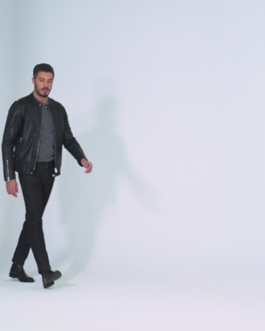 Il modello nella foto indossa una 48: è alto 187 cm e pesa 78 kg.